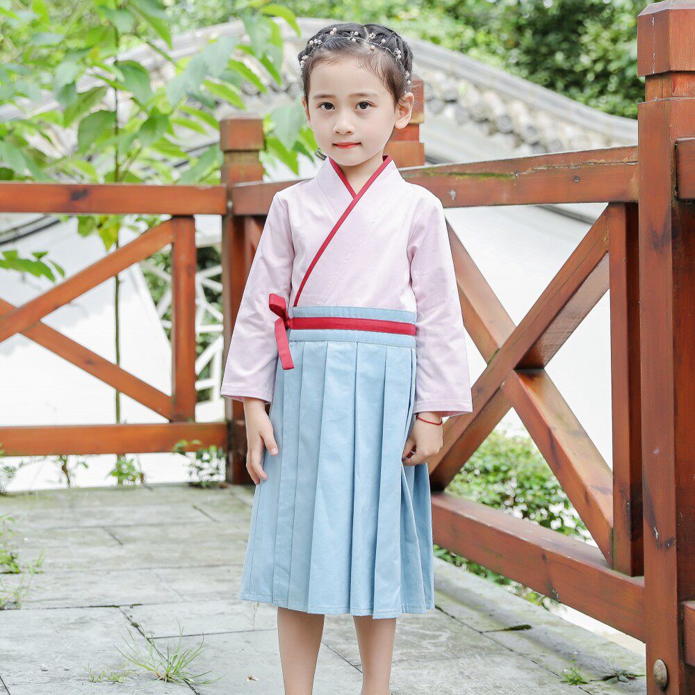 Children's Spring Autumn New Hanfu Girl Power Girl Republic Wind Dress Girl Retro Skirt Baby National School Wear and Down