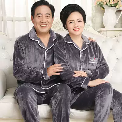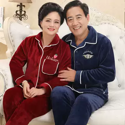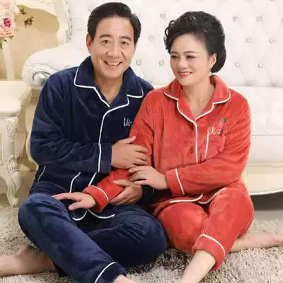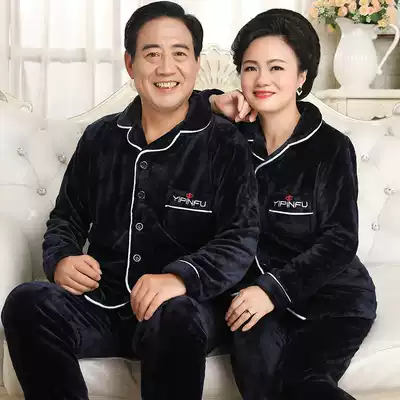 Winter coral velvet couple pajamas middle-aged men's father autumn and winter old mother thick female home clothes