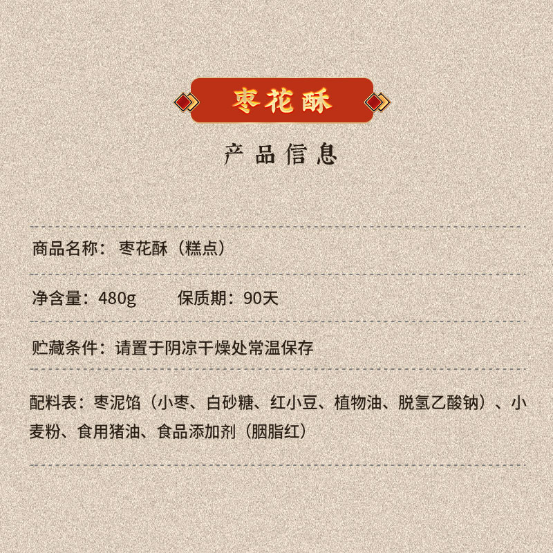 Sanhe Beijing Daoxiang Village jujube flower crisp 6 pieces jujube puree Breakfast snacks National snacks specialty pastries snacks Bulk