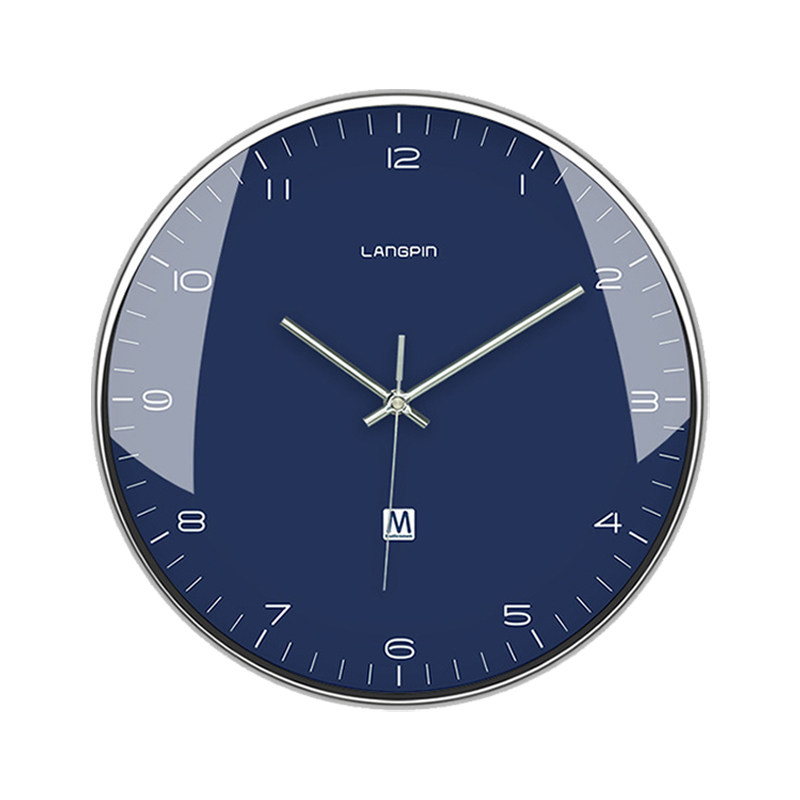 Modern minimalist big brands Inlenwind, European and American ultra-thin 14-inch dark blue white office ultra muted hanging clock