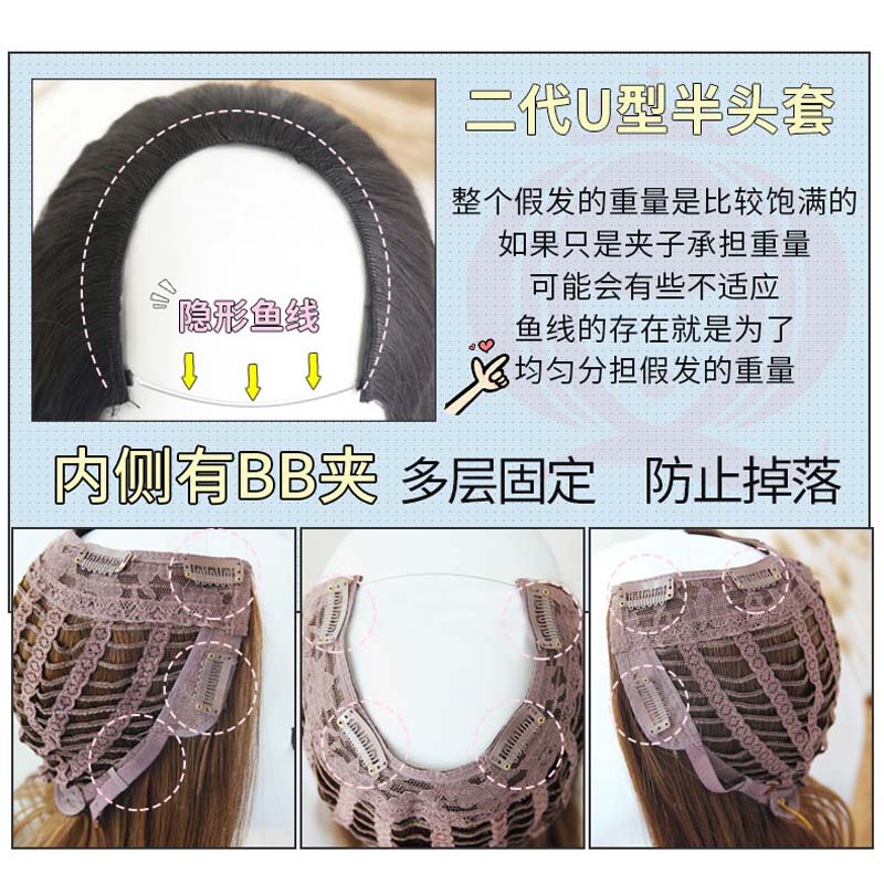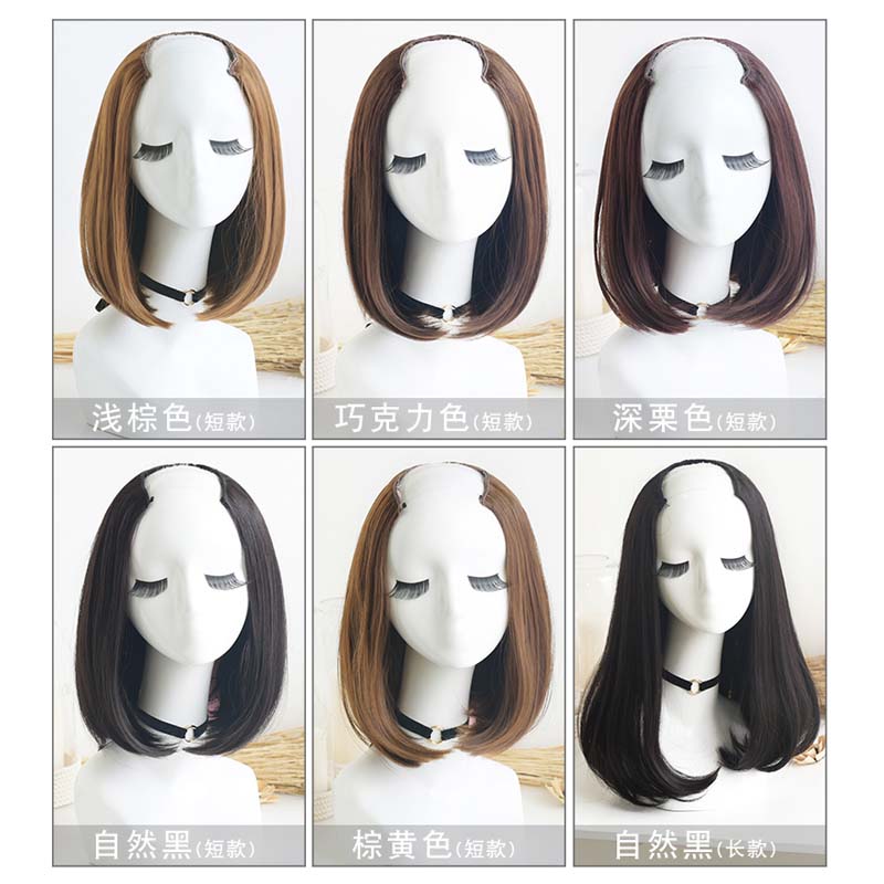 Wig female U-shaped half headgear BOBO head short hair wig without bangs medium long straight hair wig whole headgear