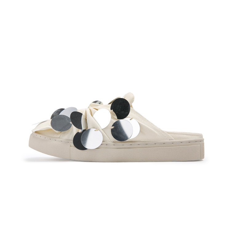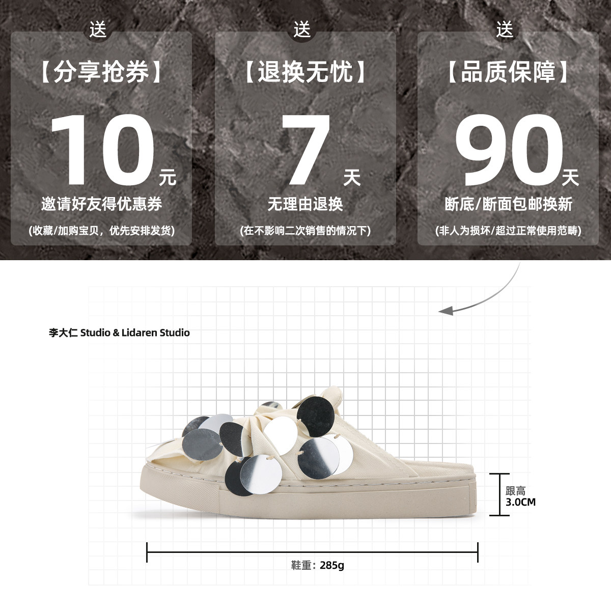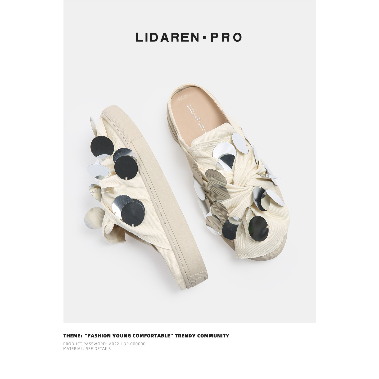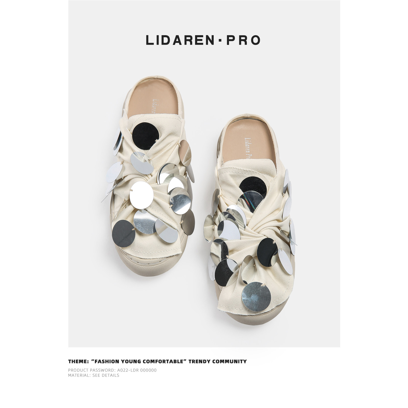 Li Daren ins Baotou half slippers 2023 spring new Hong Kong style sequins small white shoes net red slippers women's outerwear