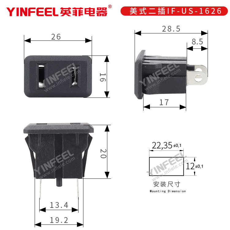 Pure copper manufacturers spot Japanese flat socket plastic card socket AC power socket small diporous socket