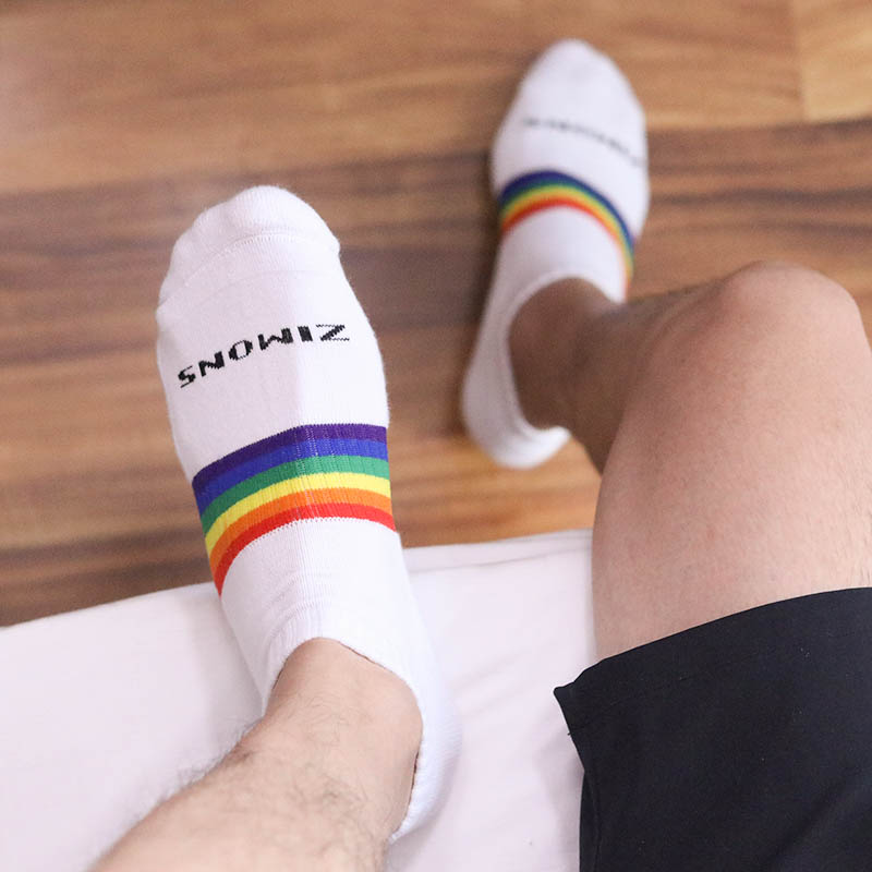 ZIMONS (hair - thickened) men's rainbow towel bottom socks sports pure cotton sweat tide personality white socks