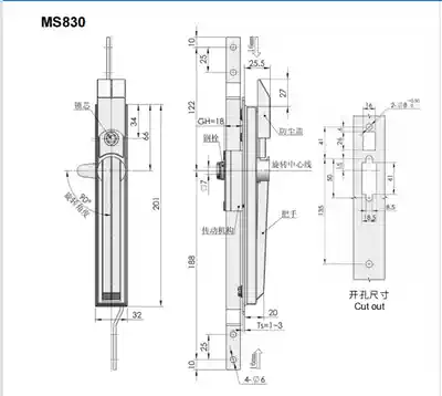 Xia middle industrial hardware door lock technology cabinet door lock shake lock lock power cabinet door lock MS829MS830