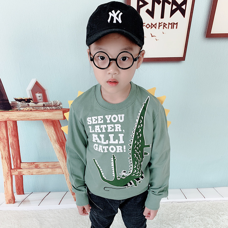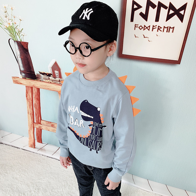 Korean dinosaur children's sweater pure cotton thin section baby top 2021 spring new children's clothing boys pullover jacket
