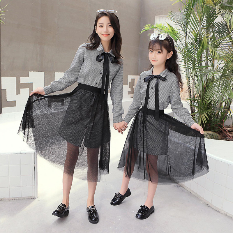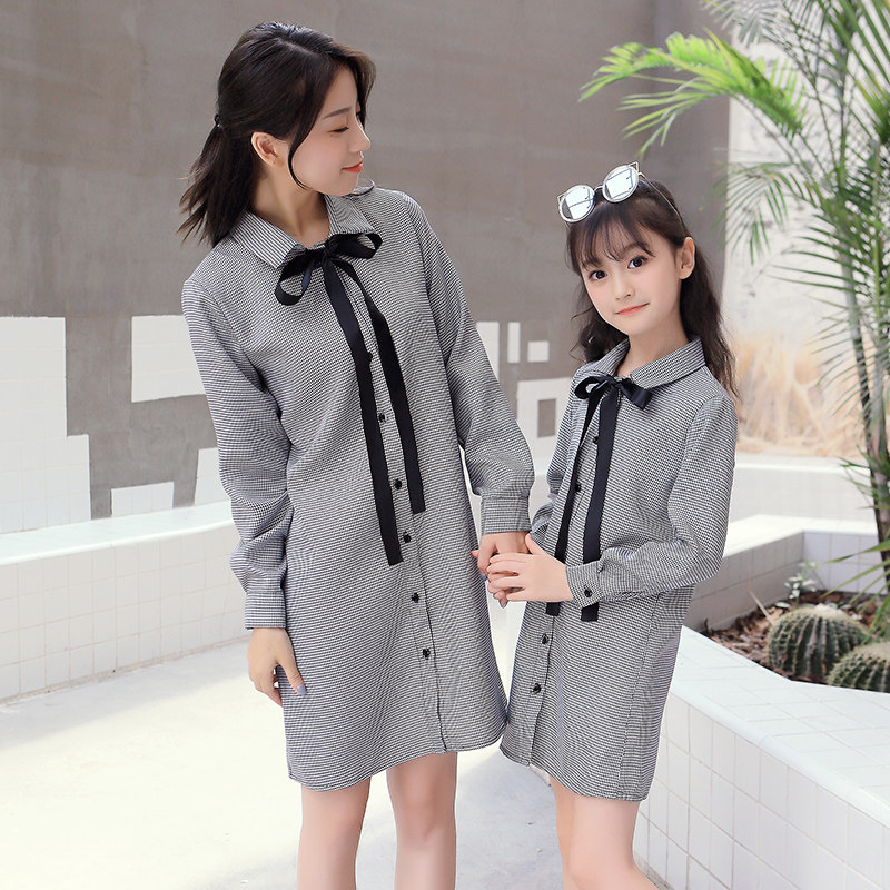 Mother and daughter in a dress.