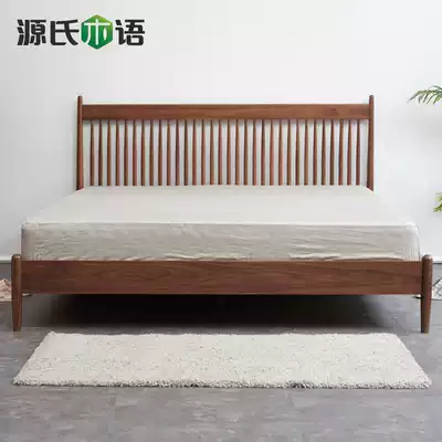 Genshi wooden black walnut bed modern simple high-end full solid wood bed small apartment Furniture bedroom double bed
