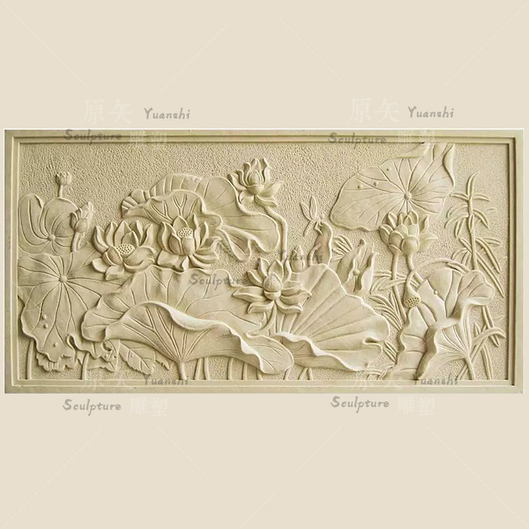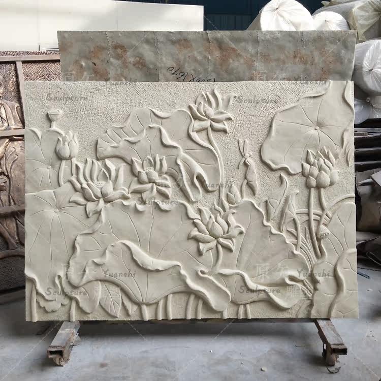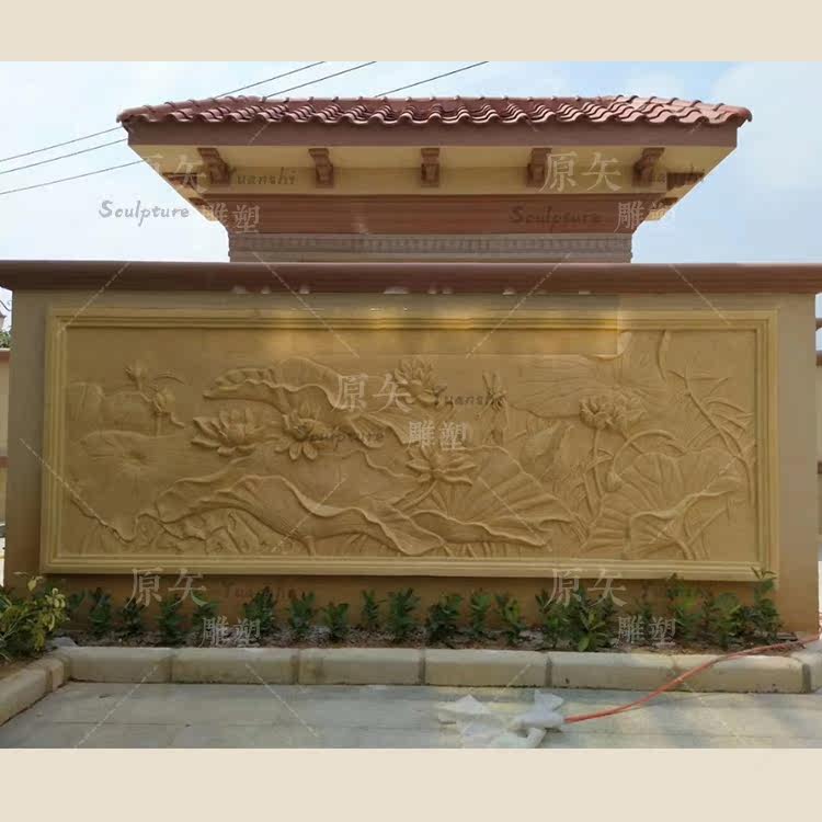 Sand Rock Relief Custom Villa Outside Wall Decorated Sandstone Lotus Frost Frost Steel Sculpture Wall Film