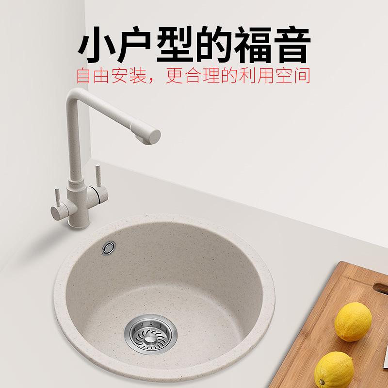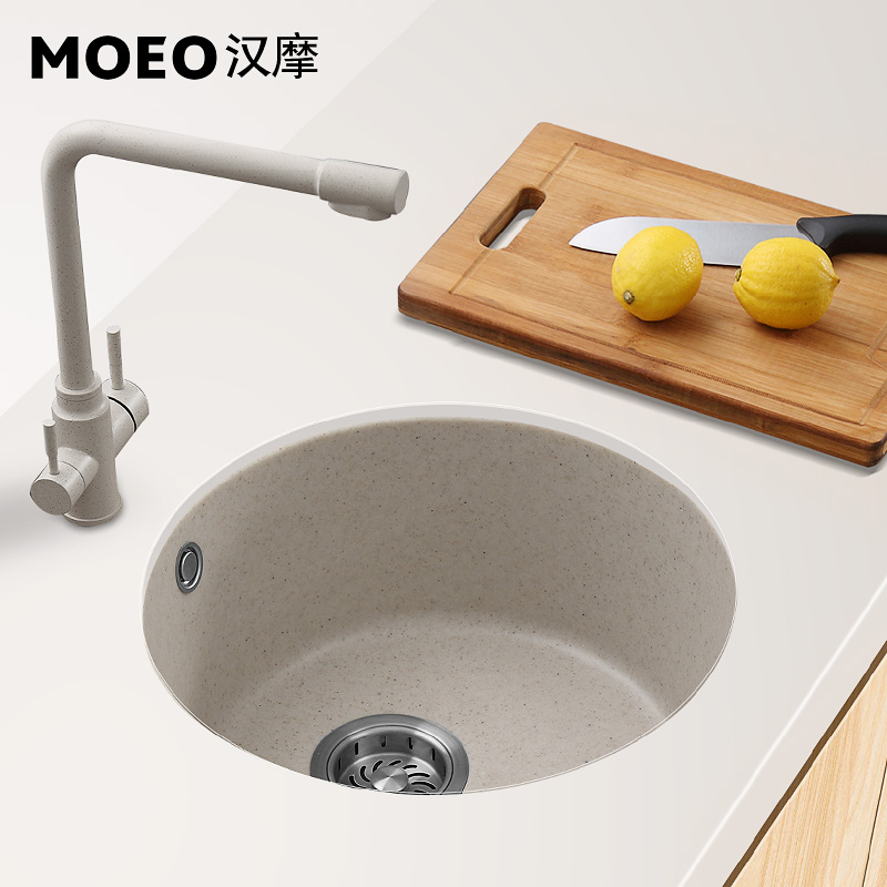 Germany Hanmo quartz stone round small sink oatmeal color washing basin Single sink sink sink Under the table basin
