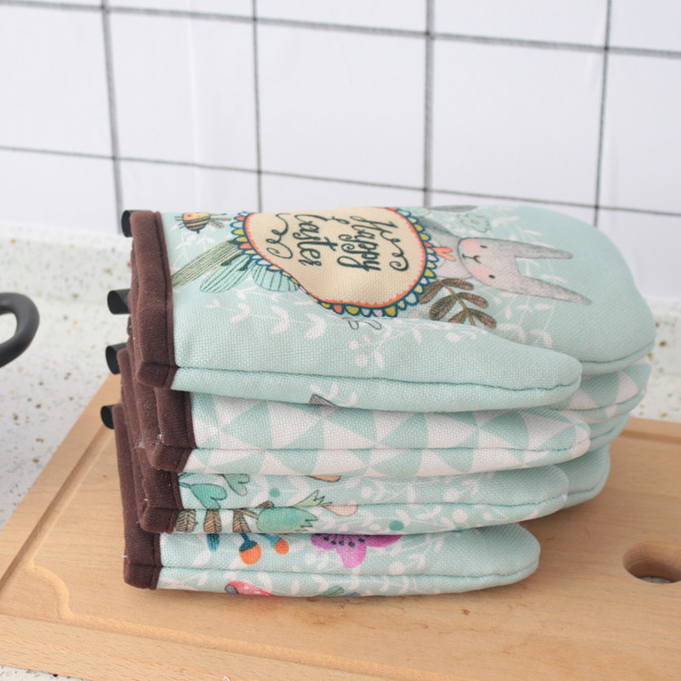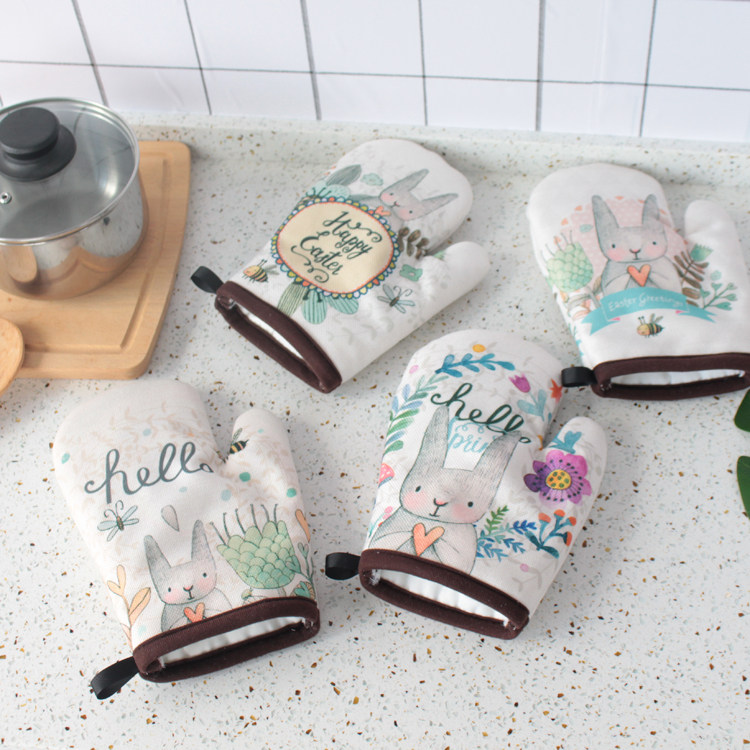 Microwave oven heat insulation and anti-scalding gloves thickened kitchen supplies Oven baking gloves Cartoon rabbit high temperature gloves