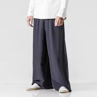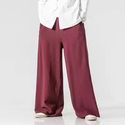 Autumn spring wide leg pants men's loose linen pants Chinese style retro casual large size men's pants cotton linen casual trousers Culottes