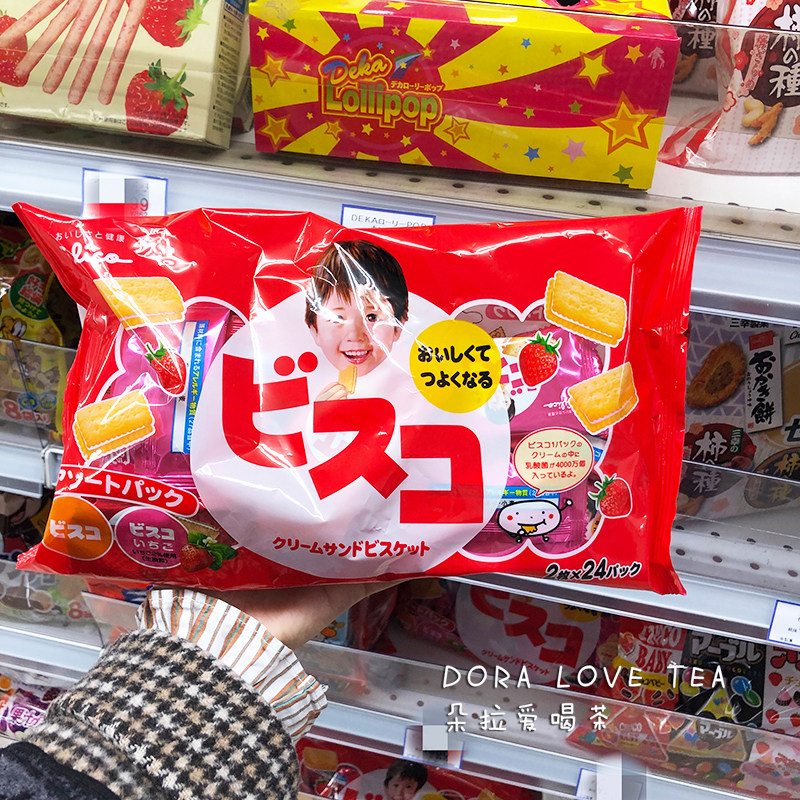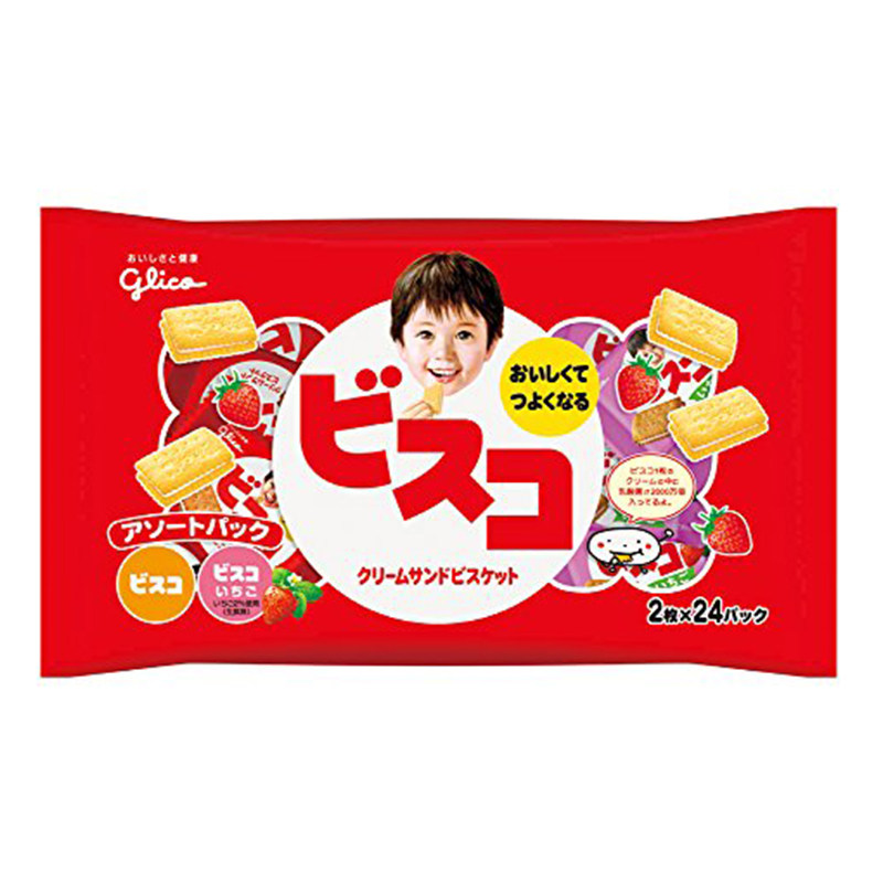 Japanese native Greco glico children's lactic acid bacteria sandwich biscuits 24 wrapped in cream strawberry vanilla cocoa