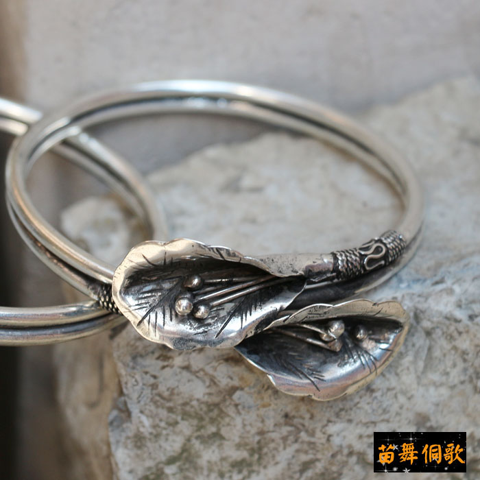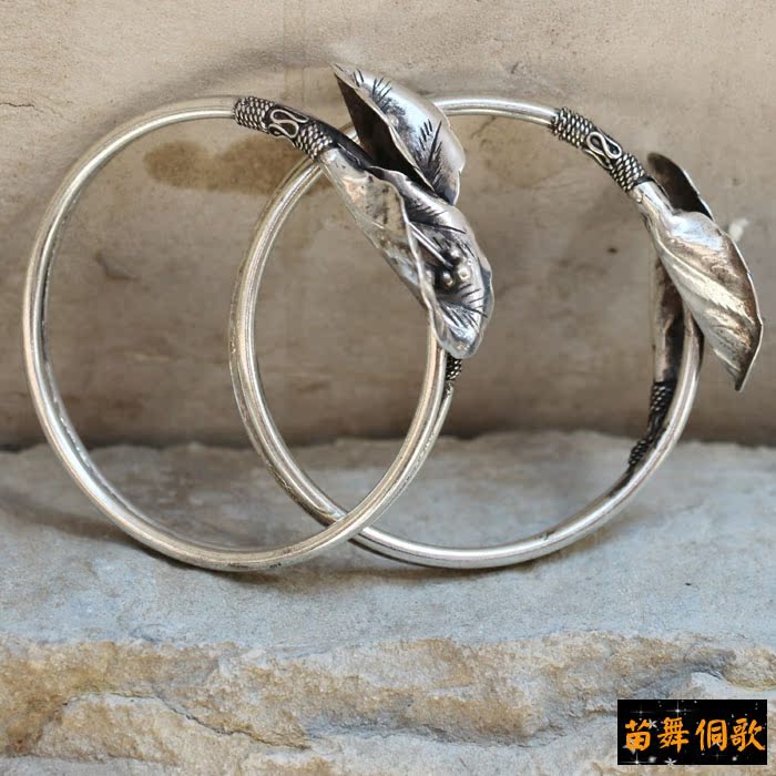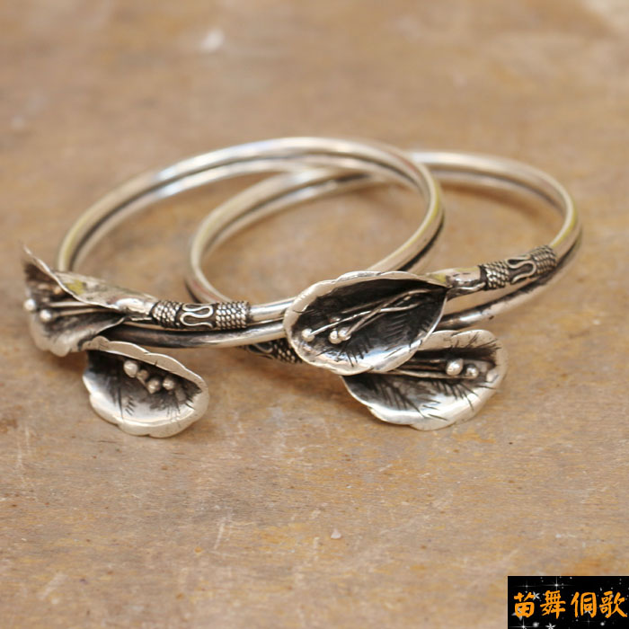Guizhou ethnic silver decoration to make old comeback ancient silver two flowers pure hand to create Miao silver bracelet bracelet-Taobao