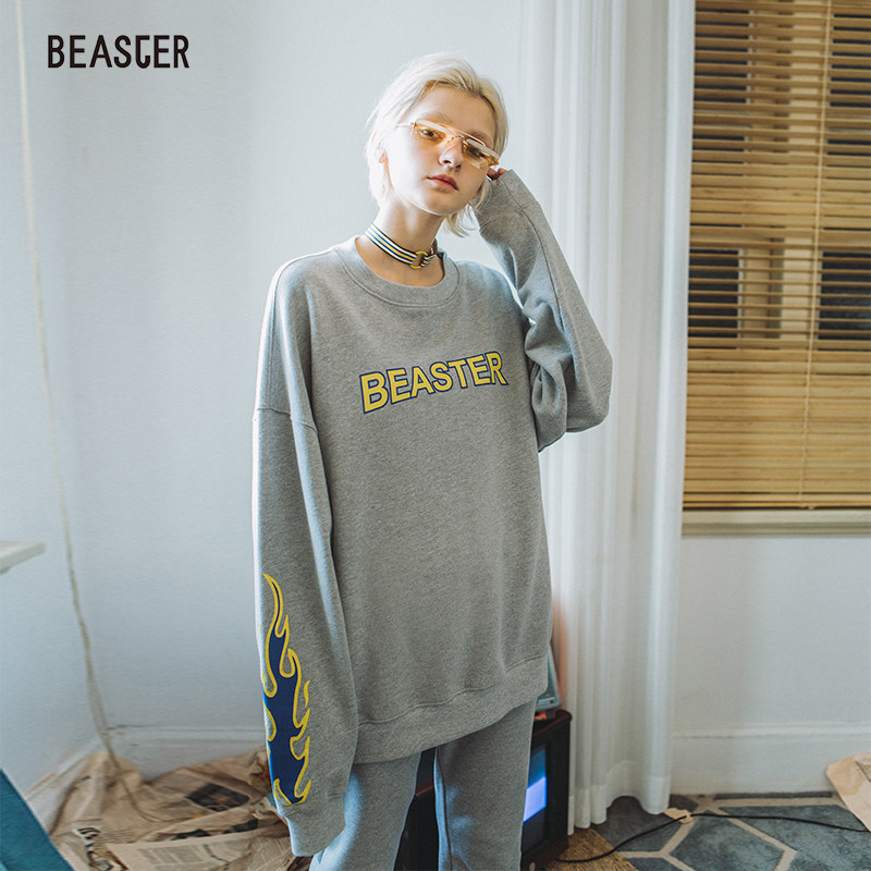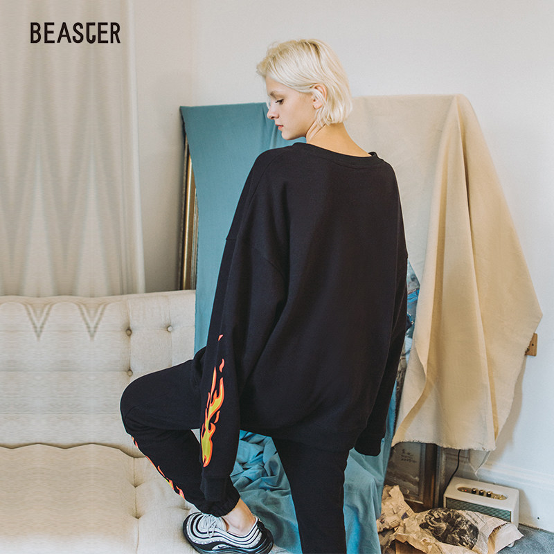 BEASTER early autumn item couple pop brand hip hop flame loose baggy sweater men's casual jacket oversize