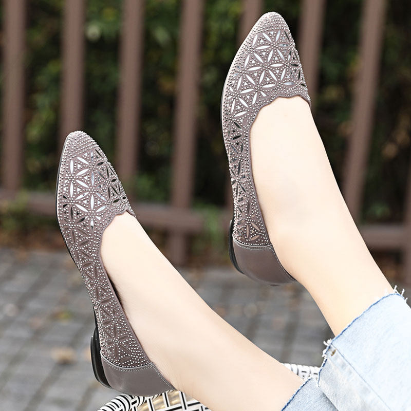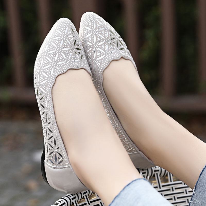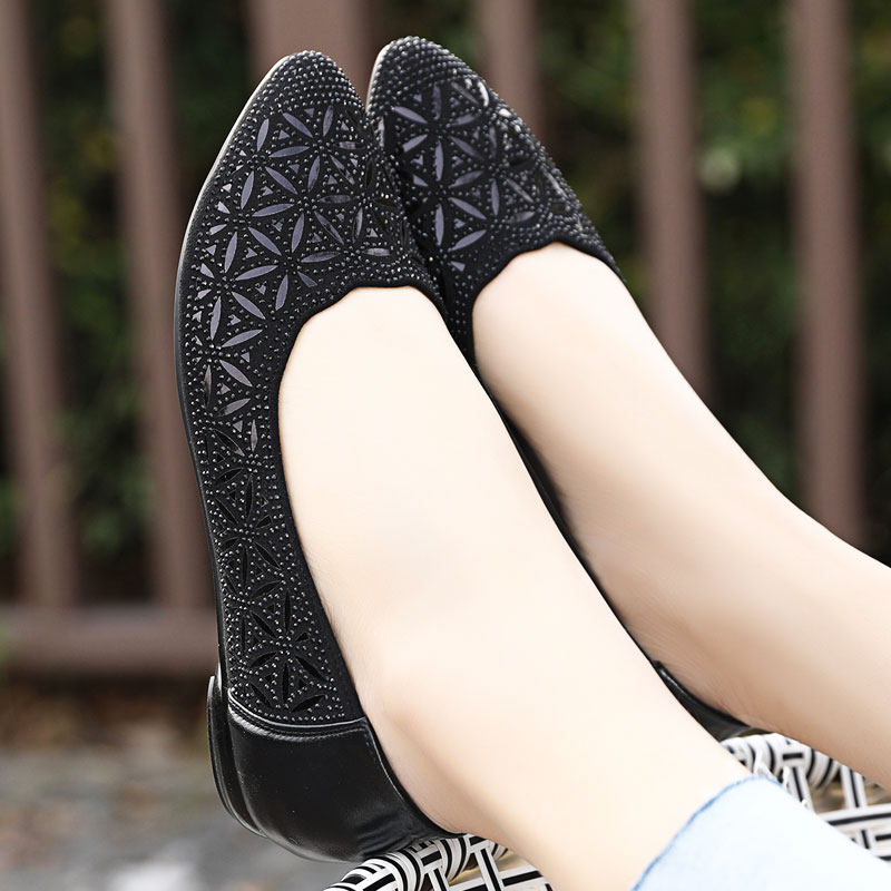 Spring and Autumn Shoes New Women's Shoes Fashion Mom Shoes Comfortable Soft Sole Flat Women's Single Shoes Summer Leather Versatile Large Size Leather Shoes
