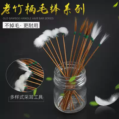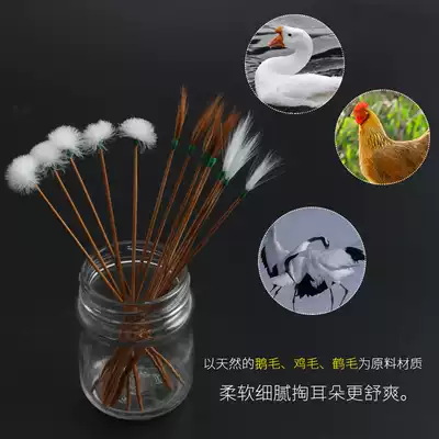 Ear picking tool Goose feather stick set Ear digging old bamboo handle chicken feather crane hair stick Ear digging spoon Ear picking goose feather stick single