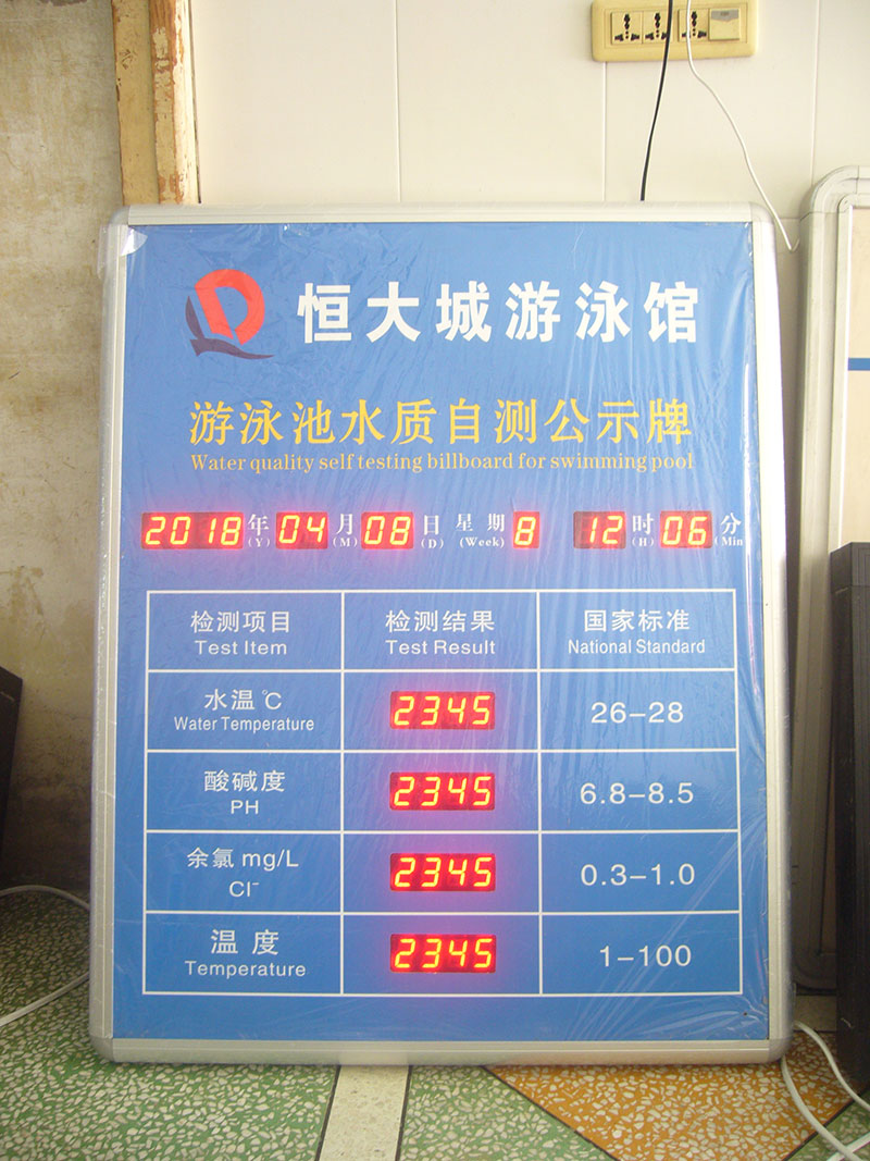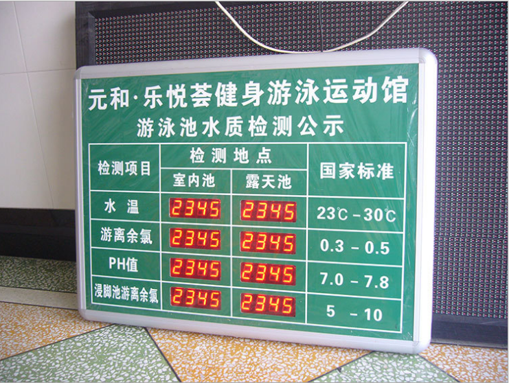 Hotel Guesthouse Swimming Pool Afterchlorine Water Temperature PH Value Electronic Display Screen Swimming Pool Water Quality Self-Test Public Signs Watch Board