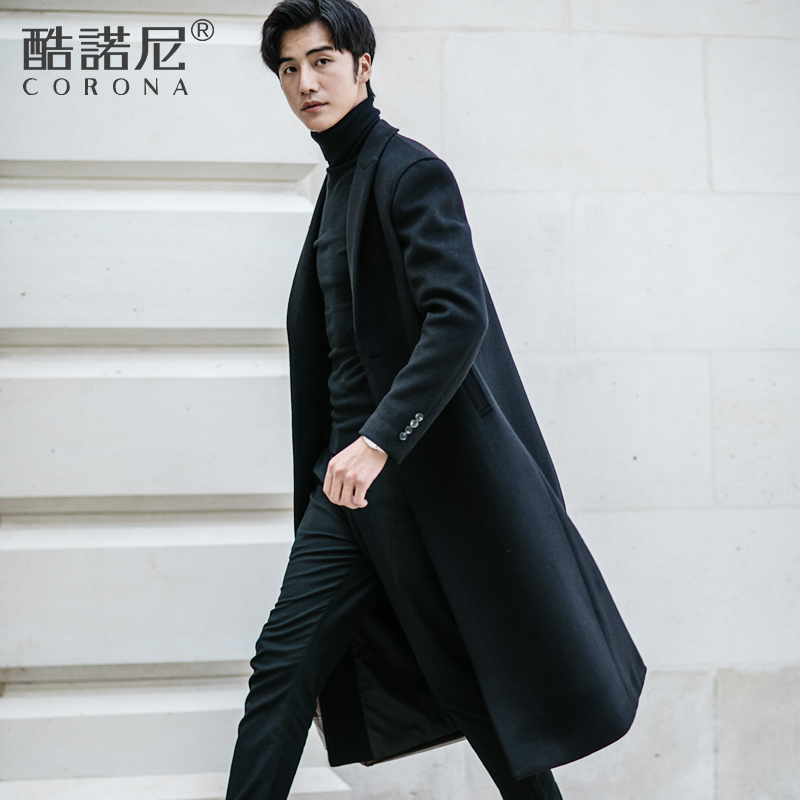 2022 new woolen woolen long knee-length coat handsome men autumn and winter windbreaker youth Korean version slim coat