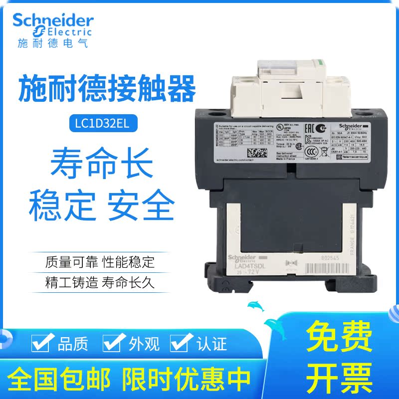 Schneider DC contactor LC1D32EL LC1-D32EL DC48V 32A elevator contactor