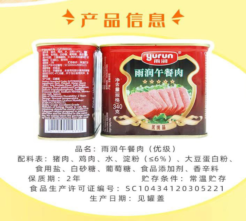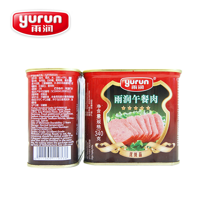 Yurun luncheon meat canned 340g pork ham hot pot ready-to-eat convenience food sandwich slices cooked food camping