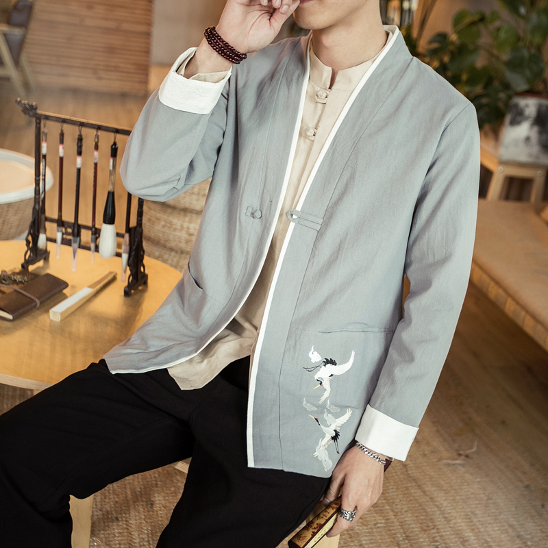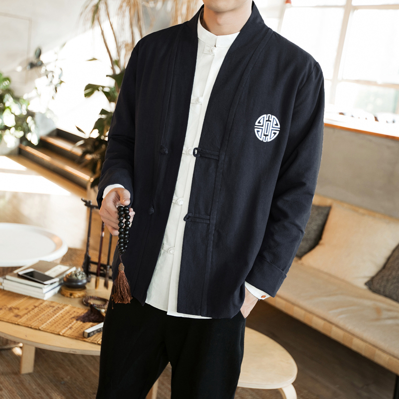 China Wind jacket men's Tang suit The big size of the great size Retro Japanese Department kimono kimono linen ancient clothing robe men's spring and autumn