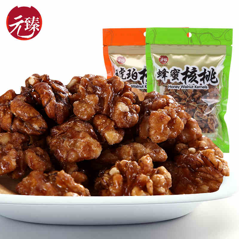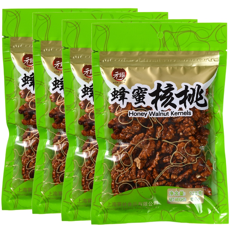 Meta-Zhen Amber Honey Fragrant Crisp Walnut Walnut 136g * 4 Bags Paper skin walnut Pulp Nutmeg Nut Casual Snack without shell