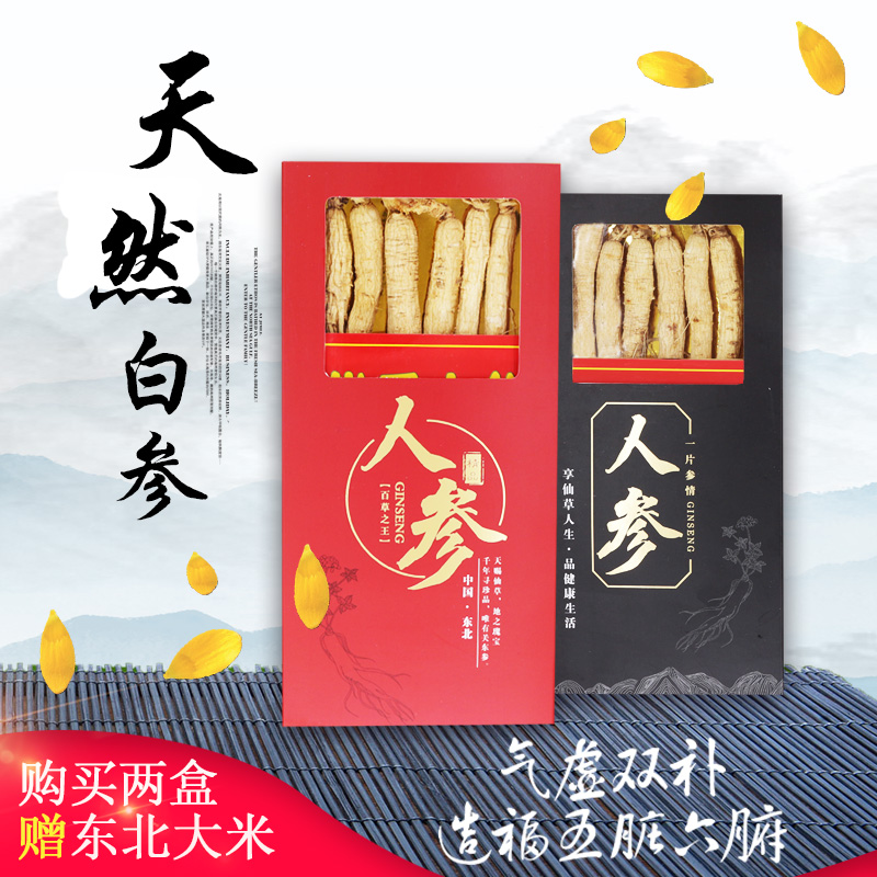 Raw dried ginseng White dried ginseng Whole branches Northeast ginseng Changbai Mountain ginseng White ginseng Single white ginseng slices soak in water