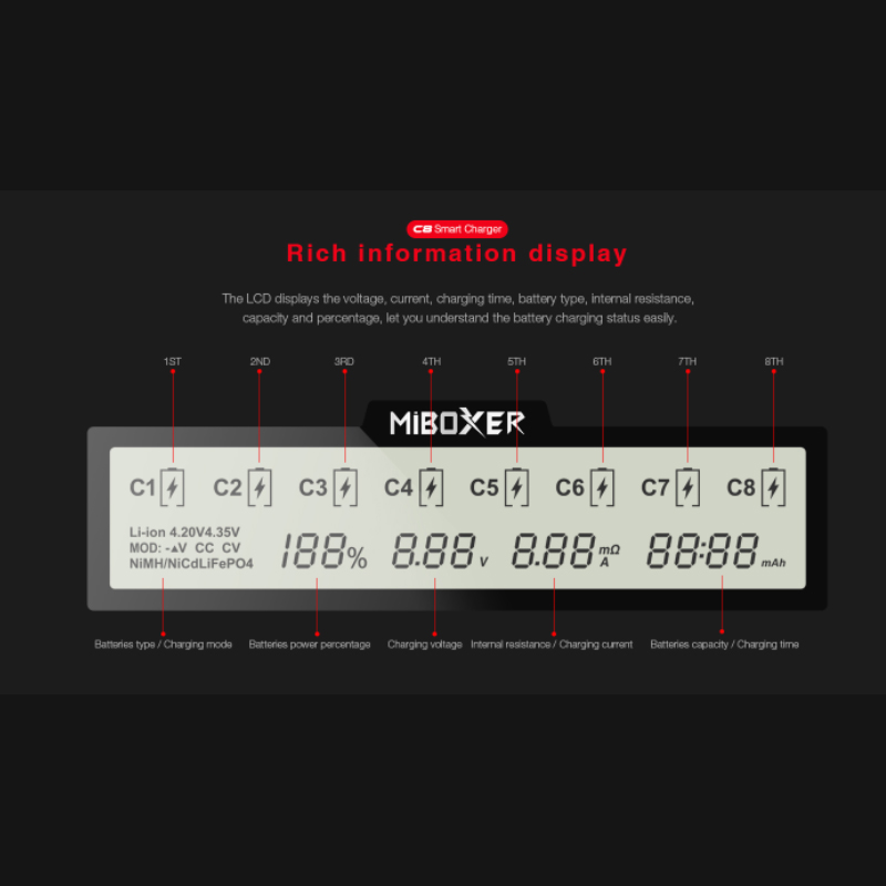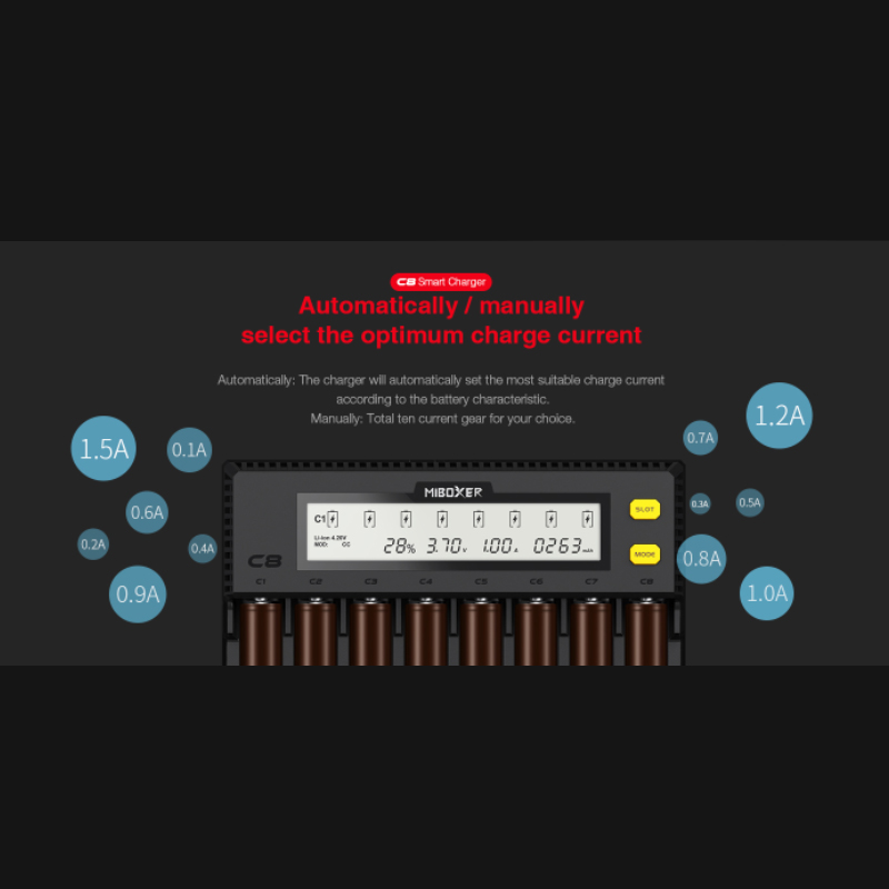 miboxer c8 18650Lithiumbatt SMARTCHARGER lifepo4 ni-mh26650