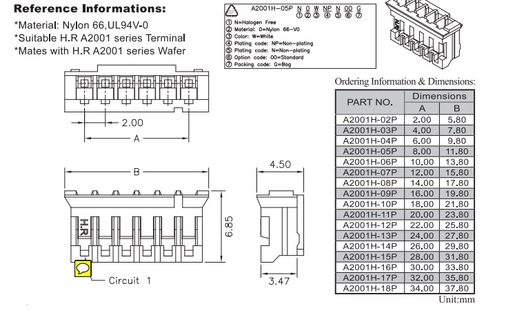PH2.0mm Pitch Rubber Shell Mother Block 2P 3P 4P 5P 6P 7P 8P 9P 10P 11P 12P