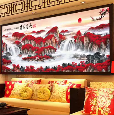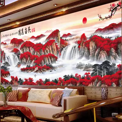 2021 New Cross Stitch Hongyun head living room full embroidery large 2 meters flowing water to make money landscape landscape painting full embroidery