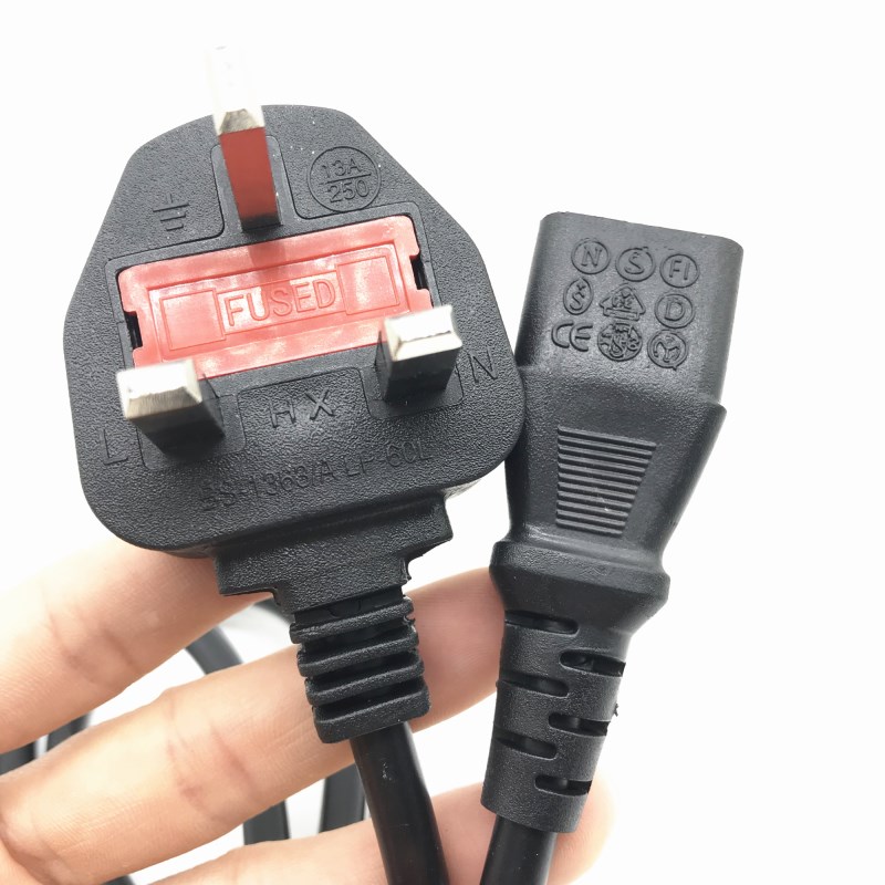 1 8 m British style with 13A fuse Hong Kong British style square leg three plug computer tail power cord