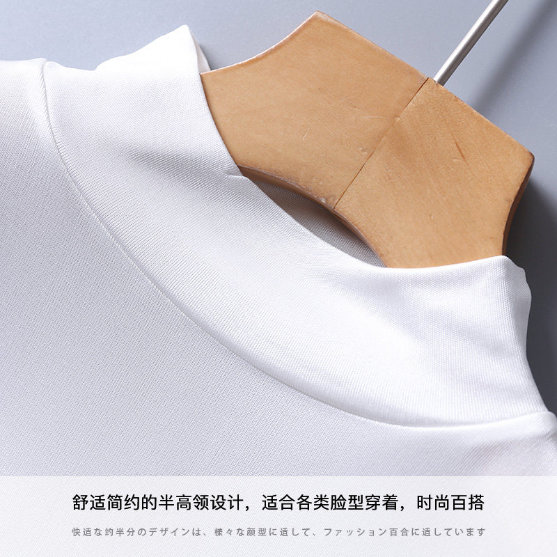 Autumn and winter new silk semi-turtleneck long-sleeved inner jacket loose large size warm top Mulberry silk T-shirt women's clothing