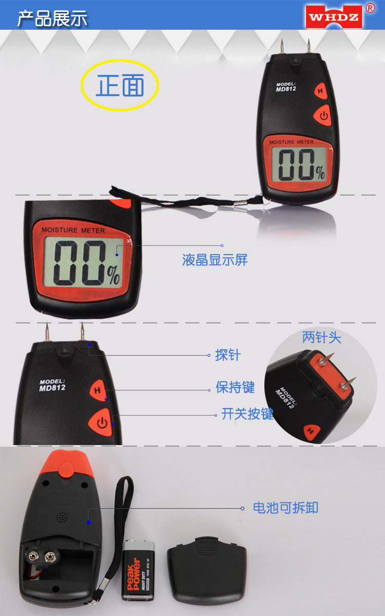 Wood Moisture Tester MD812 Furniture Moisture Tester Zhangzhou Weihua Moisture Tester