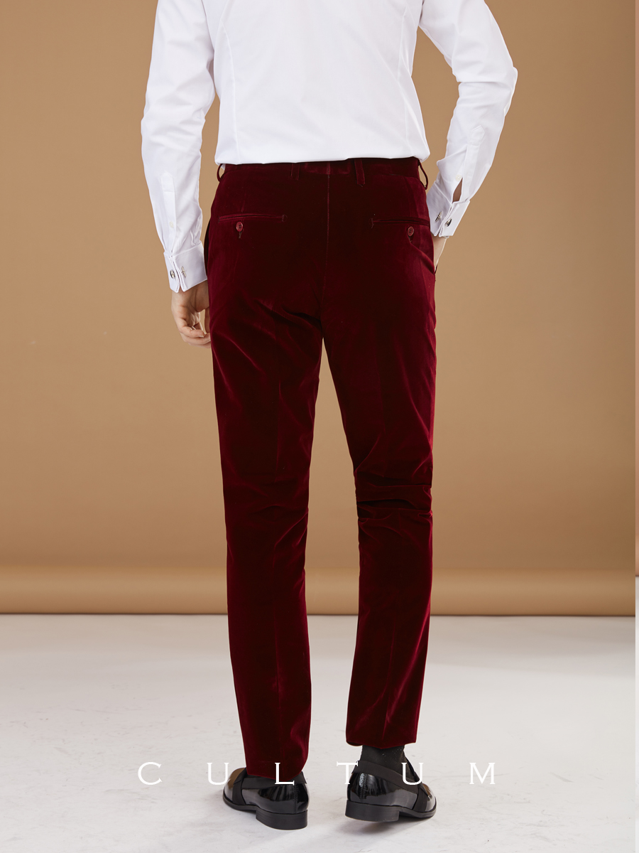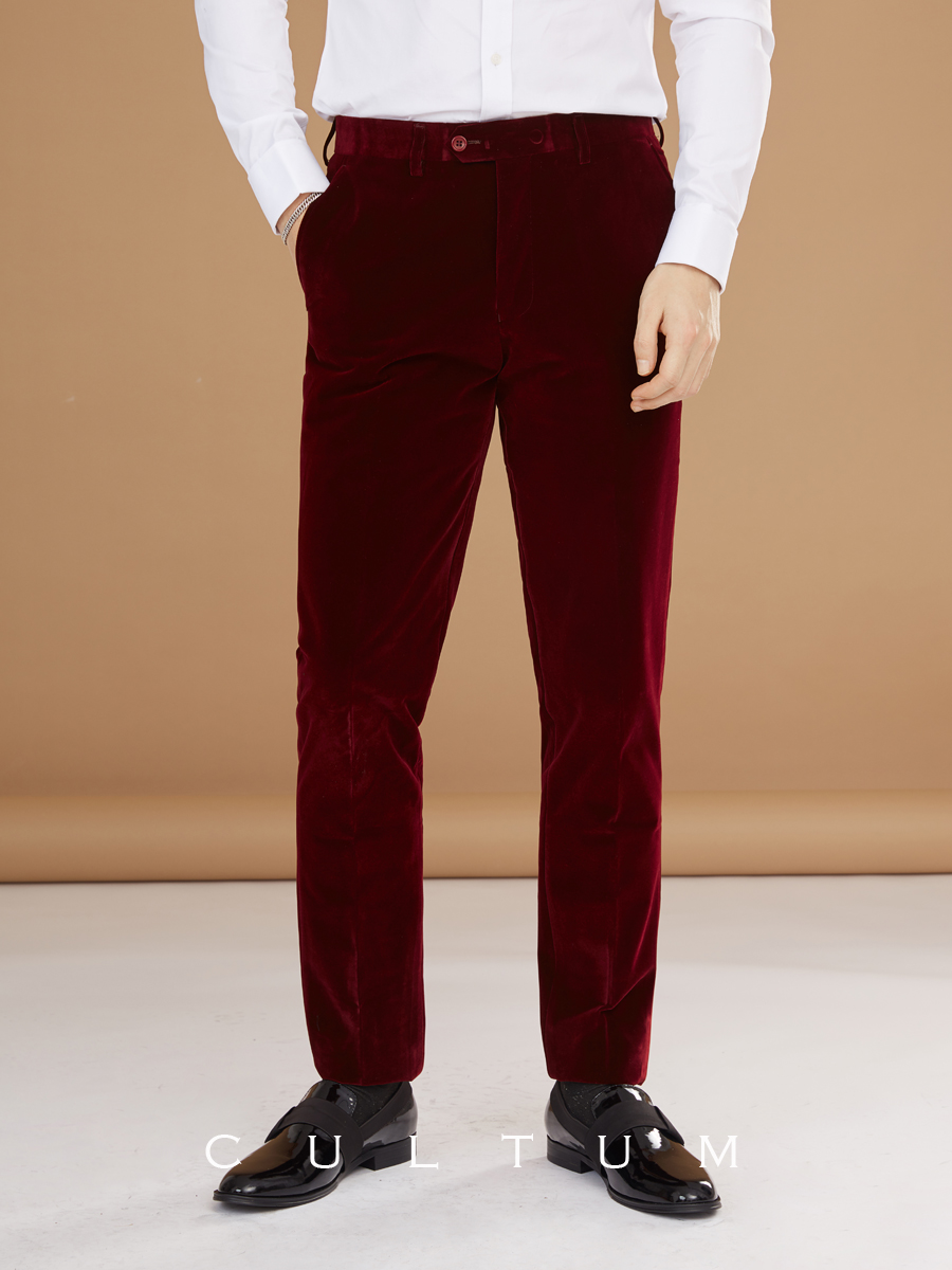 Business West Clothing Pants Men's Body Straight Sleeves Small Feet Long Pants Trendy Days Goose Down Banquets Wedding Authentic Wine Red Dark Blue Black