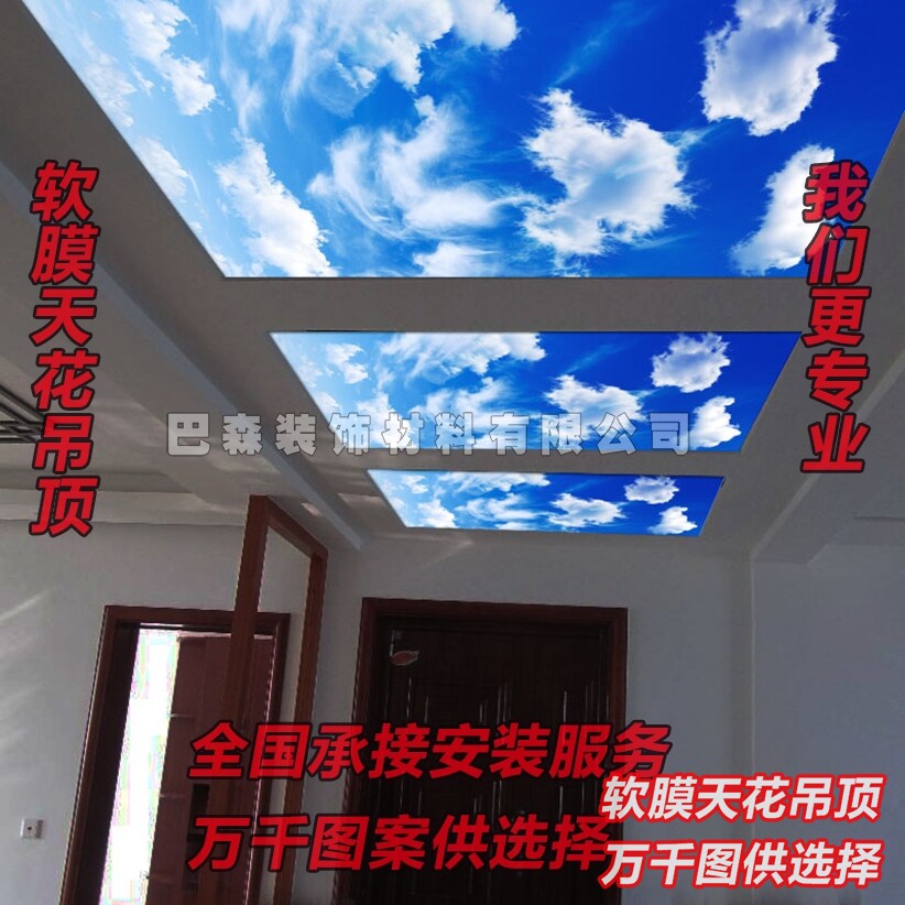 Blue sky and white clouds style living room dining room HD stereo UV soft film Advertising light box Suspended ceiling keel blade soft film