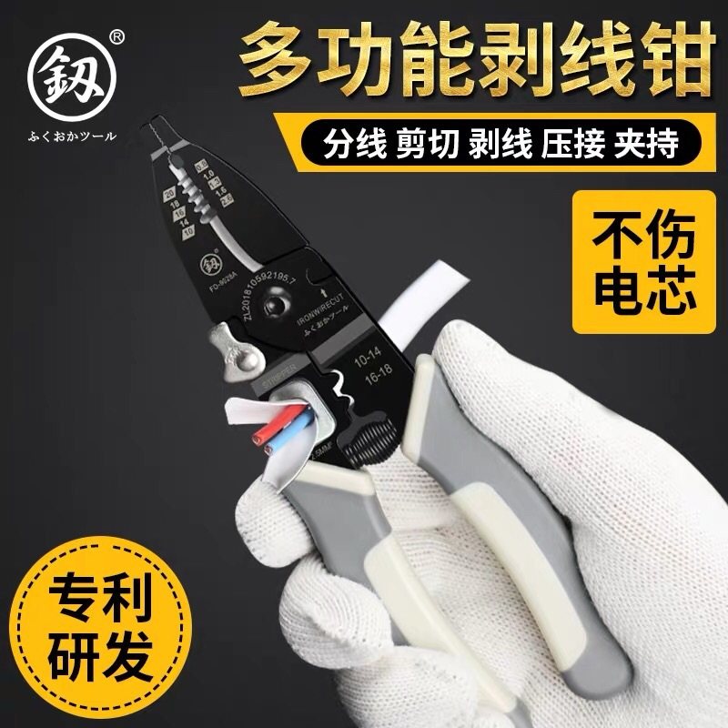 Fukuoka Fukuoka cable cutting wire pliers multi-functional wire stripping pliers electrician stripping tool peeling pliers wire cutting pliers hot sale