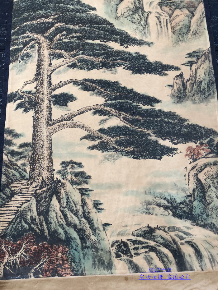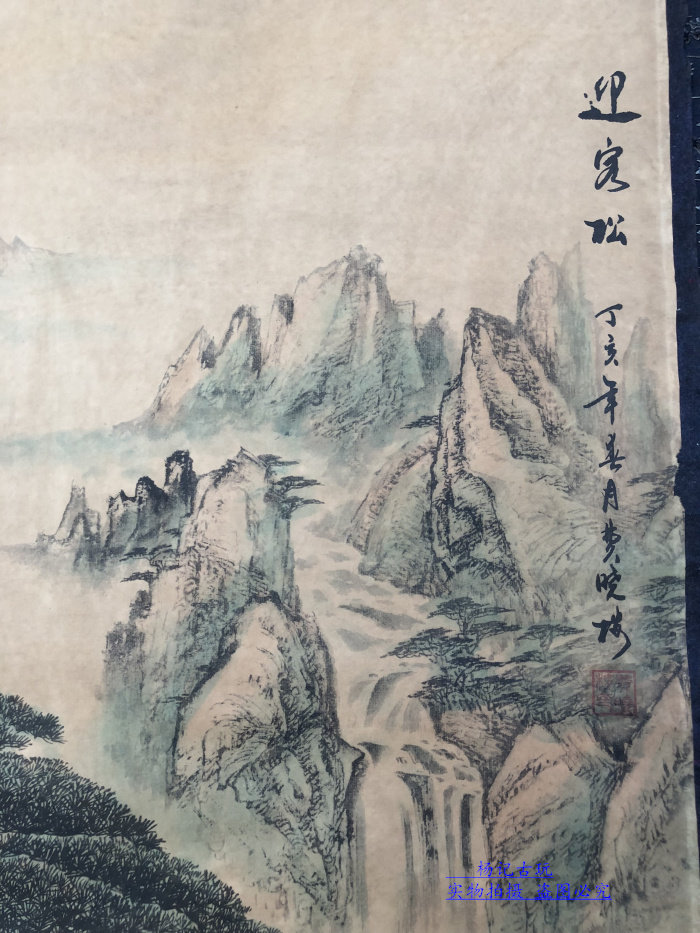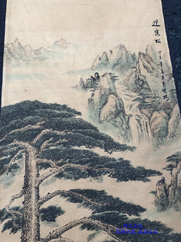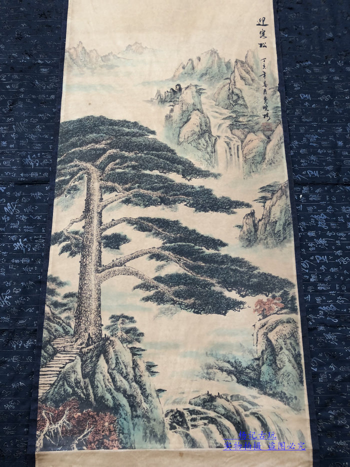 Calligraphy and painting, antique calligraphy and painting, ancient painting decoration, welcoming pine picture, living room framed scroll calligraphy and painting collection