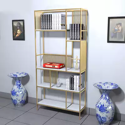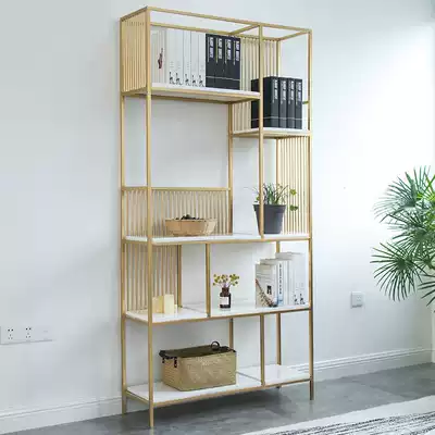Nordic modern minimalist shelf living room solid wood iron display decoration gold partition multi-level floor book shelf