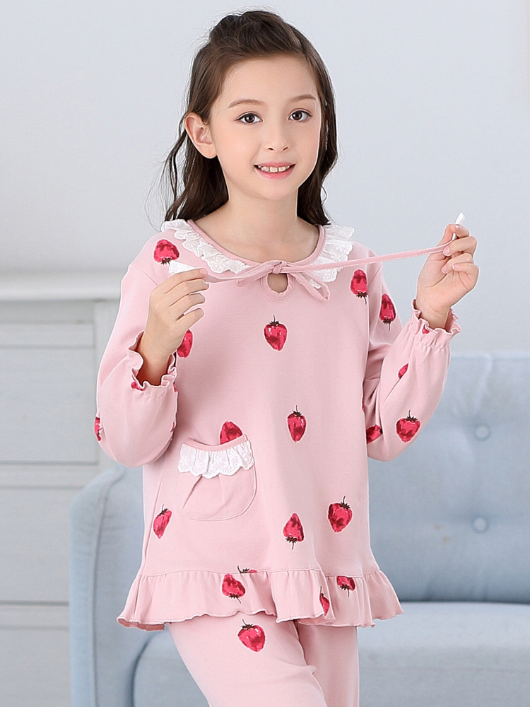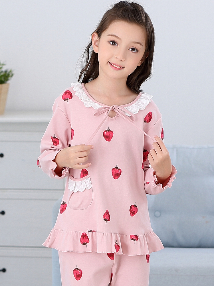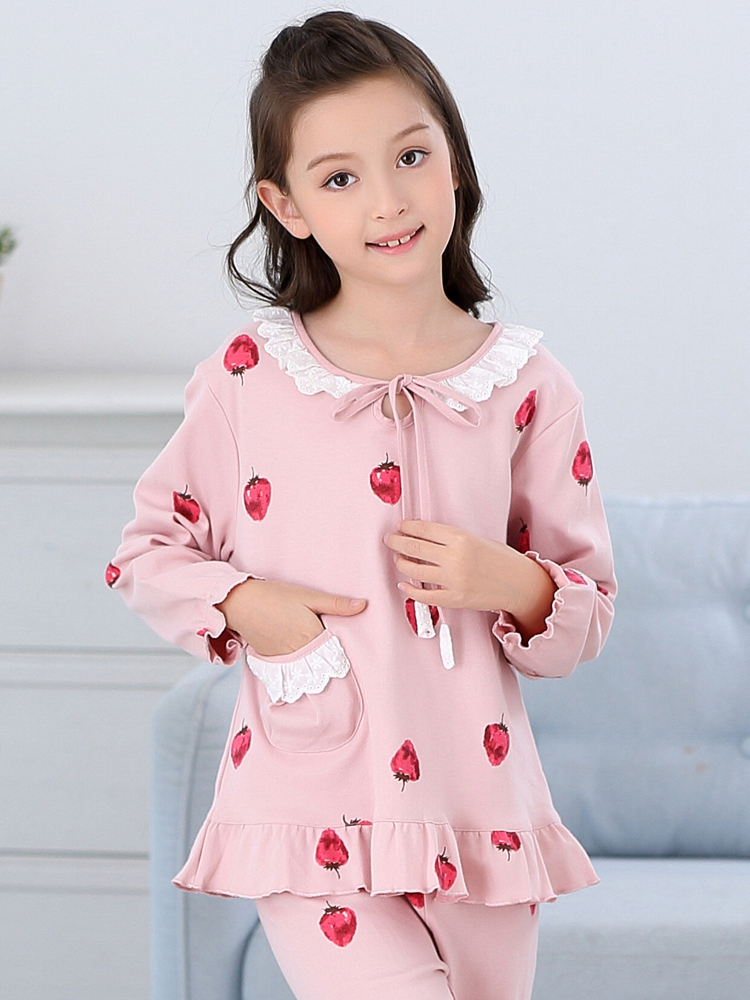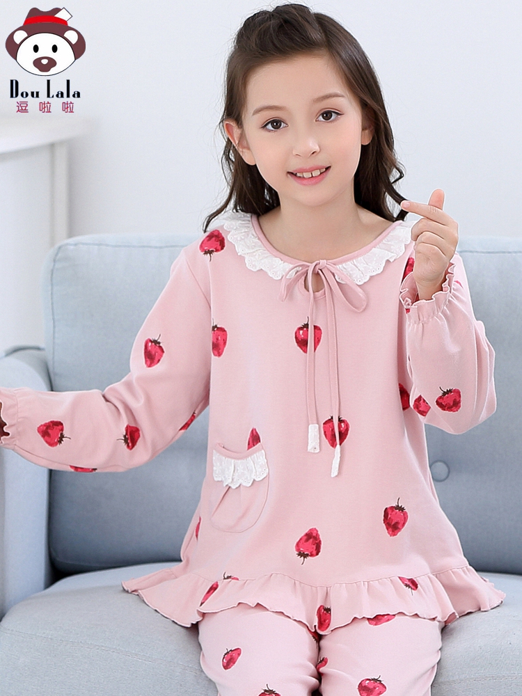 Children's pajamas girls pure cotton long-sleeved spring and autumn thin section girls middle and big children summer princess baby home service suit