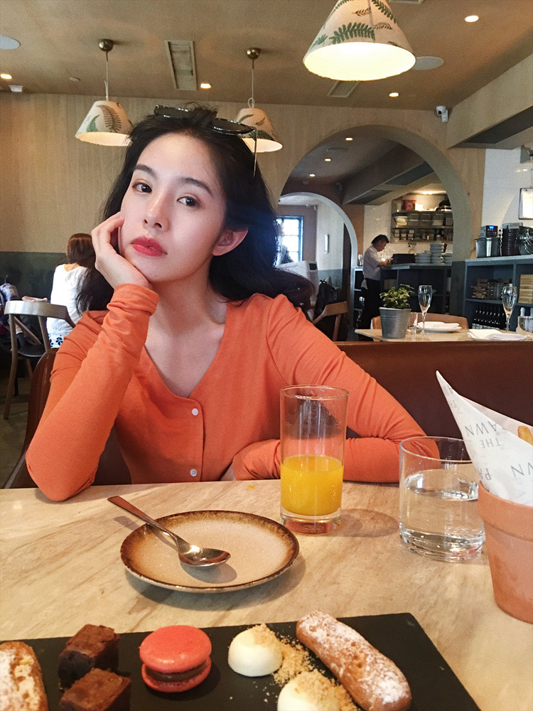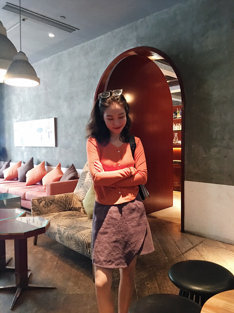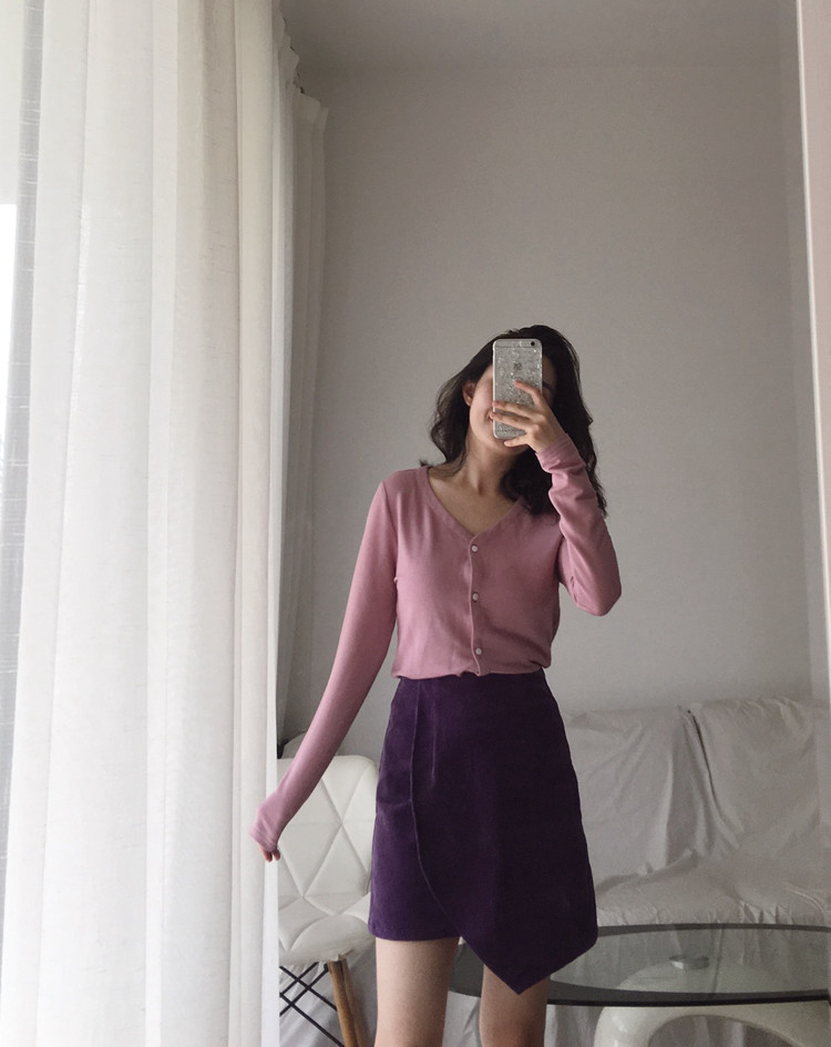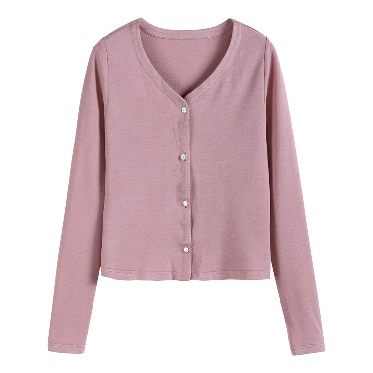 Via Vela 2019 Spring and Autumn) White Sunset Orange Dark Pink Ice Silk V-neck slim short knitted top