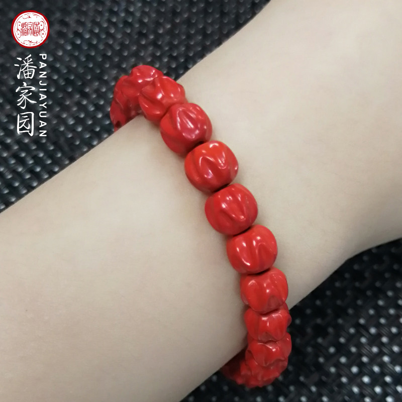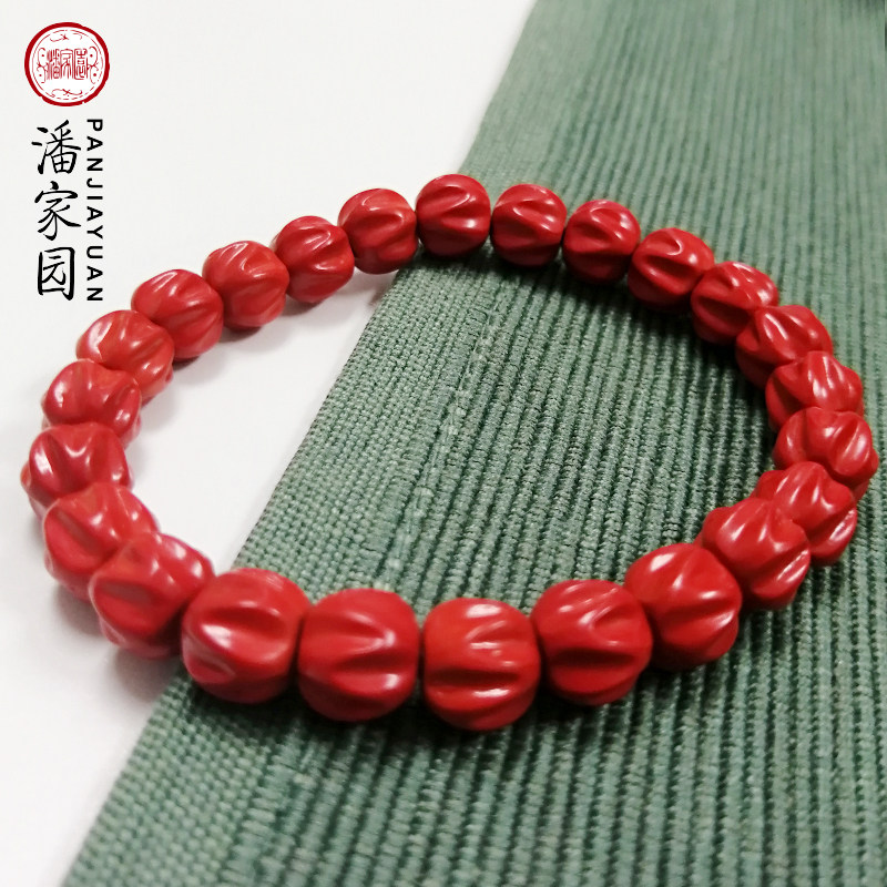 Panjiayuan Natural cinnabar traditional craft cypress seed-shaped bracelet Jewelry gift Wenwan hand