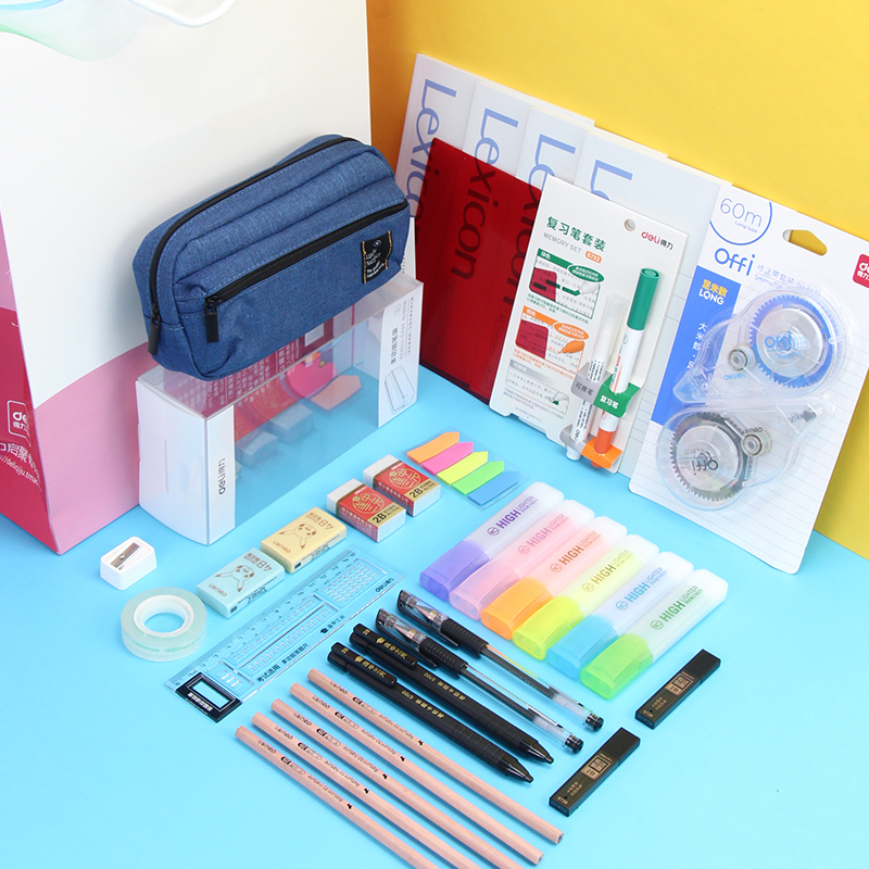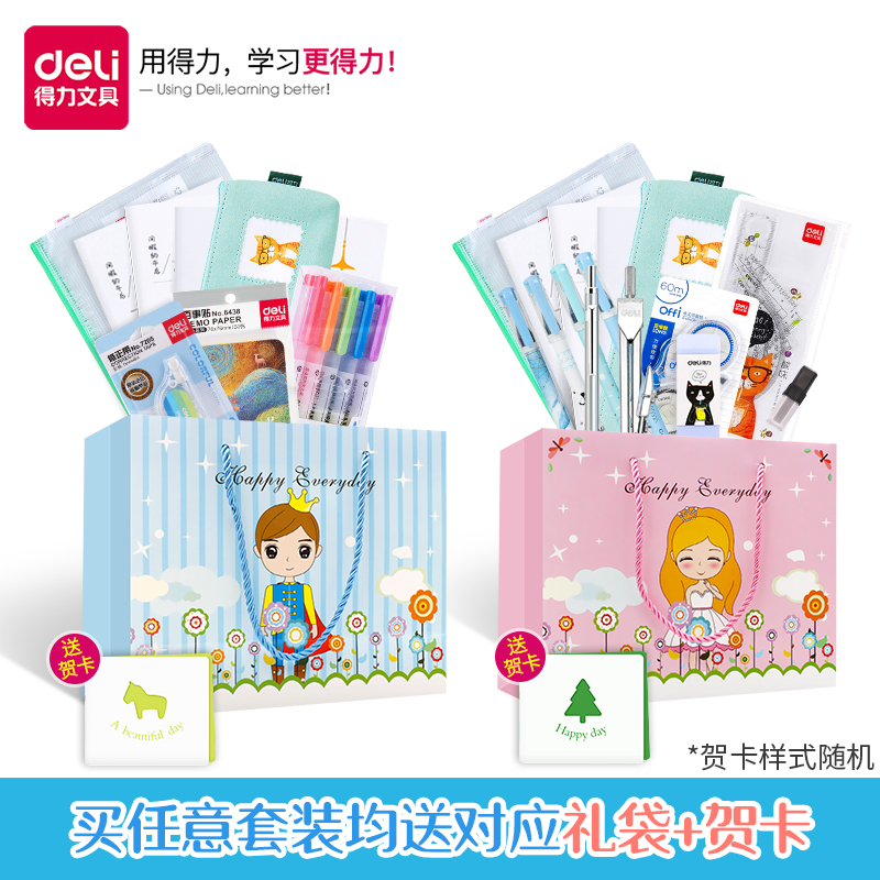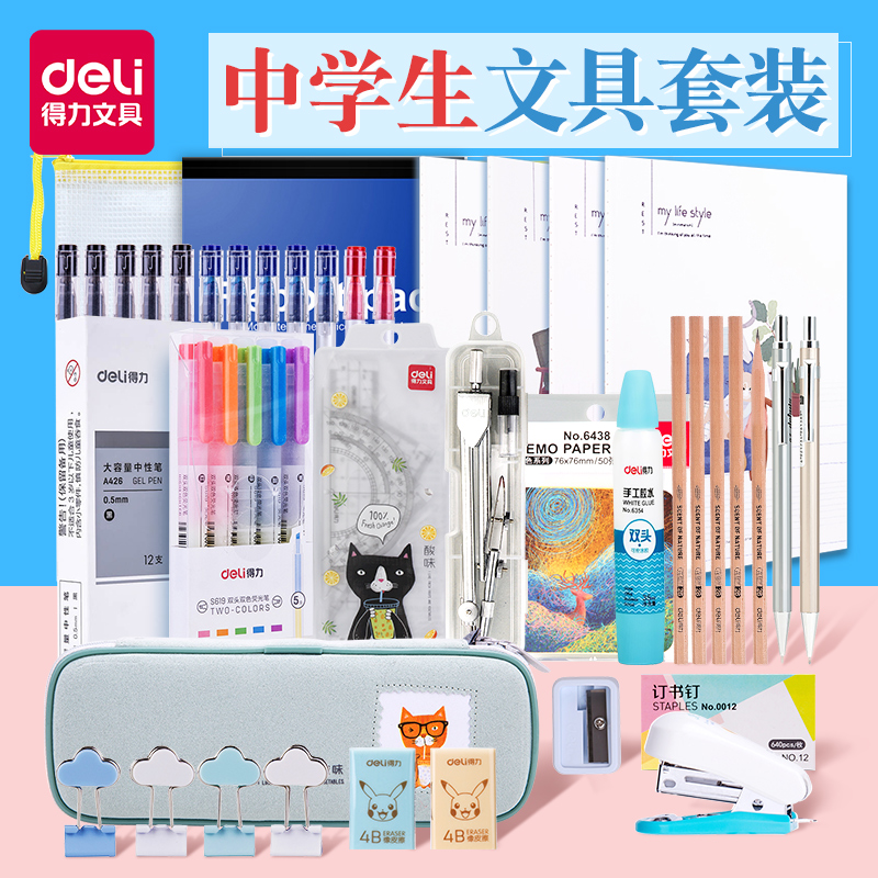 Deli junior high school students use school supplies Encyclopedia of middle school students opening gift package New Year stationery set full set of entrance to school 567th grade high school students gift box junior 1st grade 2 junior 3rd grade