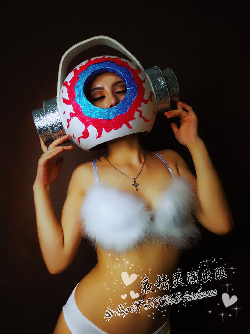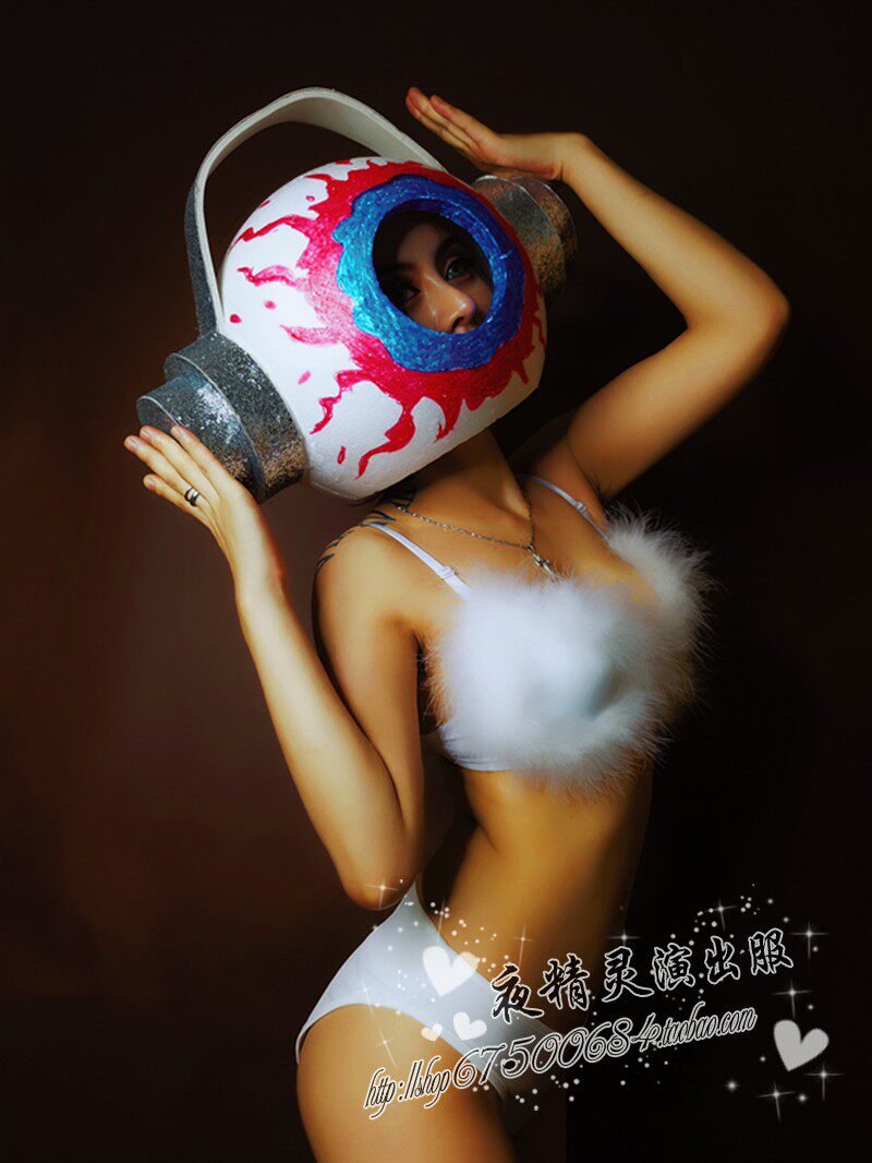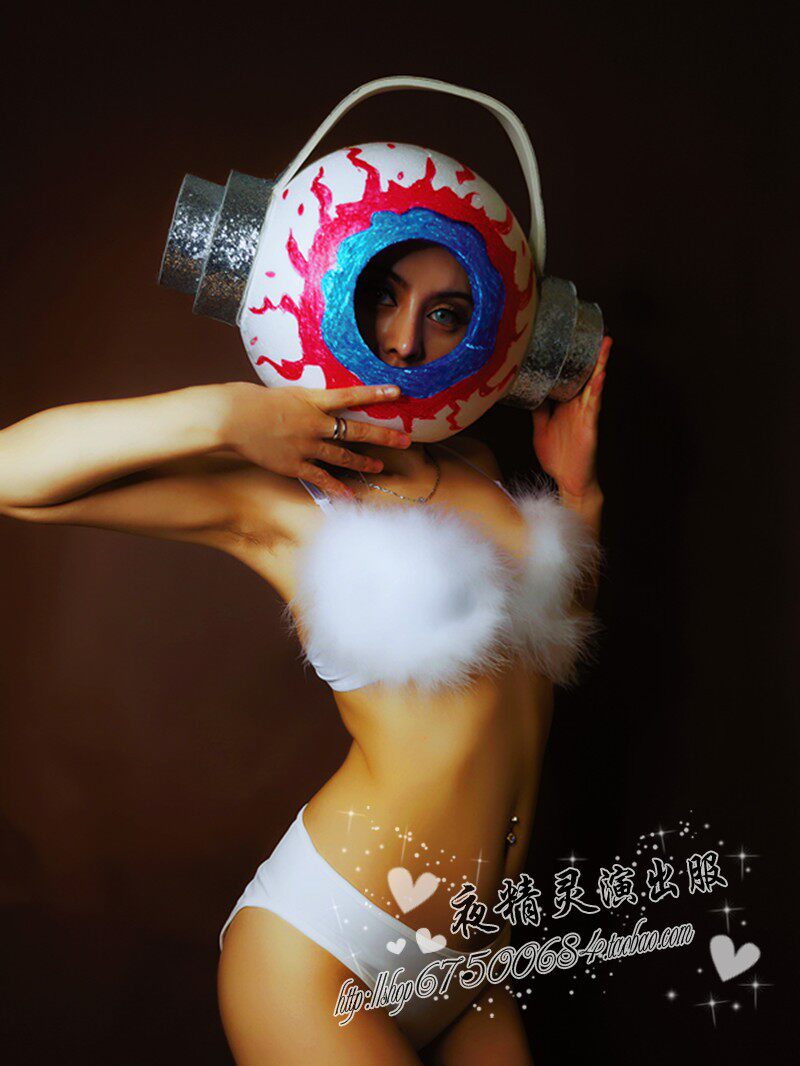 Night Elf Halloween Weird Big Eyeball Headphones White Bikini Suit GOGO Opening Dancer DS Costume