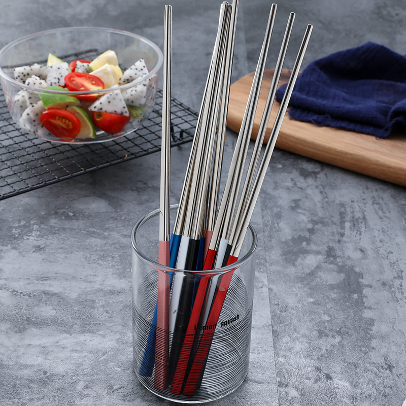Upscale thickening 304 Stainless Steel Chopsticks Creative Personality Non-slip Full Square Chopsticks 5 Double Home Fitted Home Alloy Chopsticks