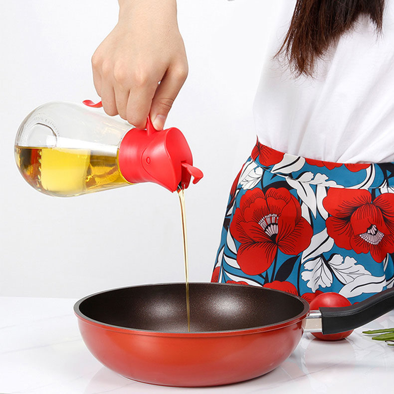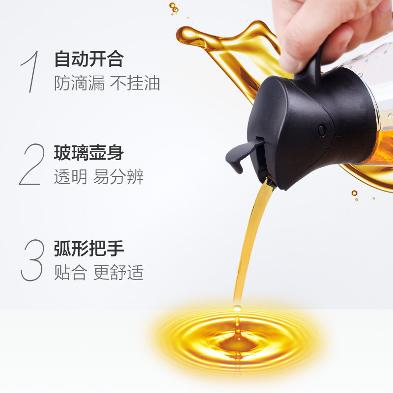 Cocoa glass oil pot leak-proof kitchen stainless steel seasoning bottle vinegar soy sauce bottle set household automatic opening