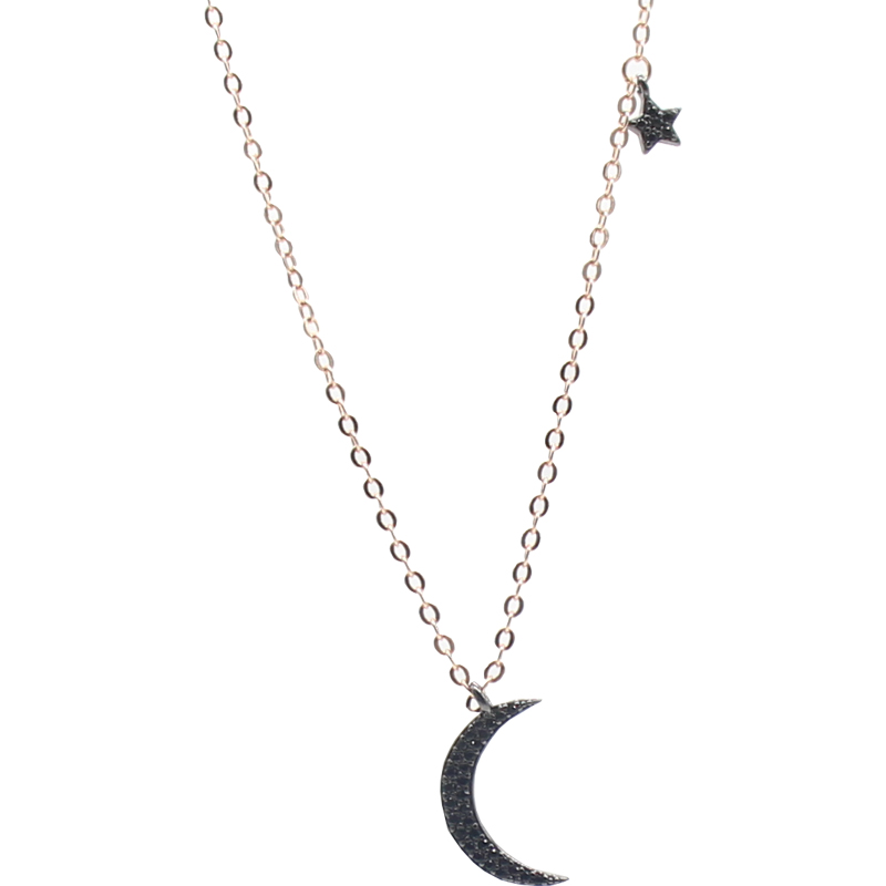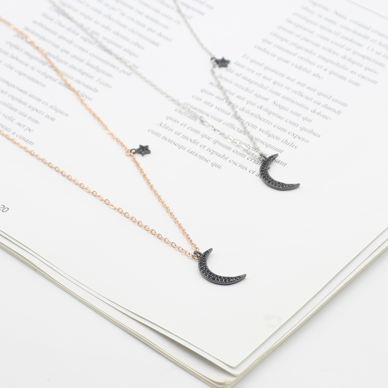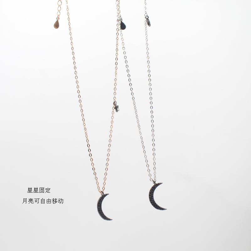 S925 pure silver black moon necklace female Korean version minimalist Temperament Star Moon Lock Bone Chain Lukewarm Chic Necklace
