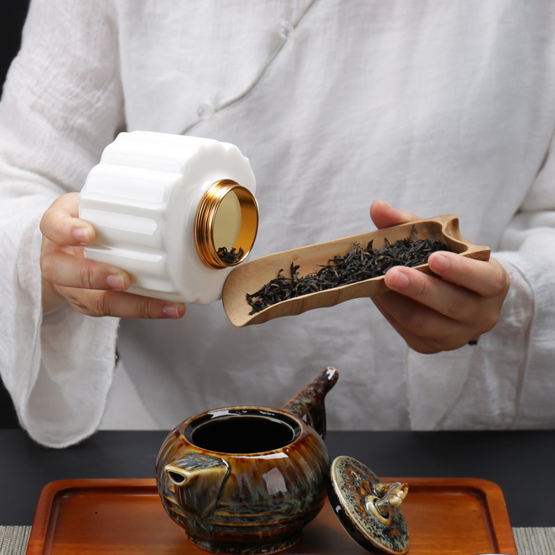 Sealed tea leaf jars ceramic Pu'er tea box tea packaging jar seal storage tank white porcelain tea leaf jar small number of tea pot-Taobao