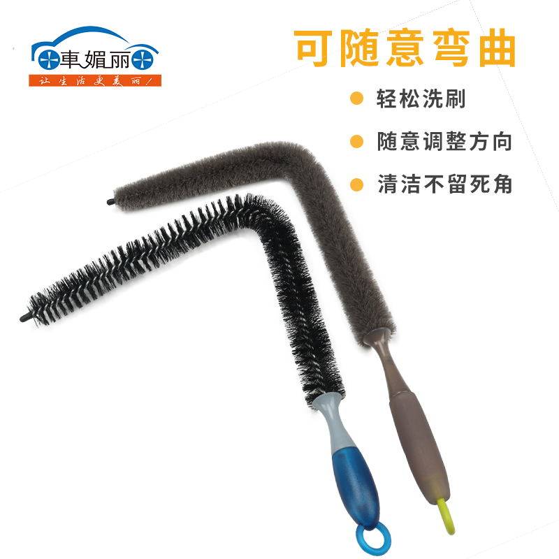 Multifunctional car engine cleaning brush hub brush engine oil dirt head brush long handle curved brush