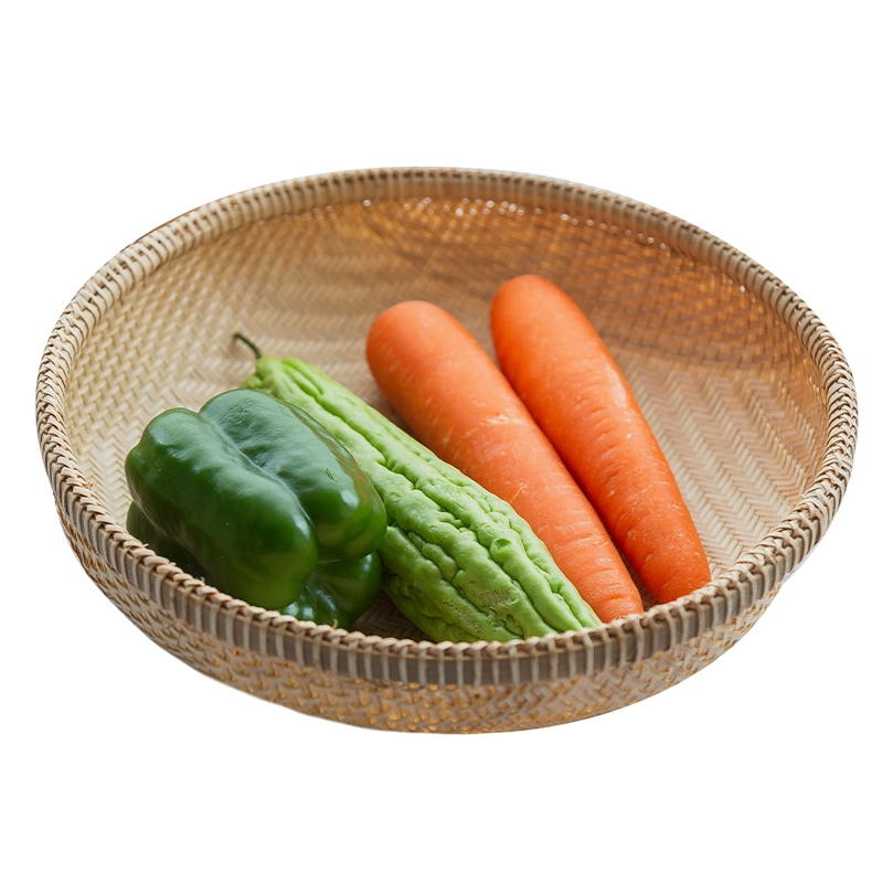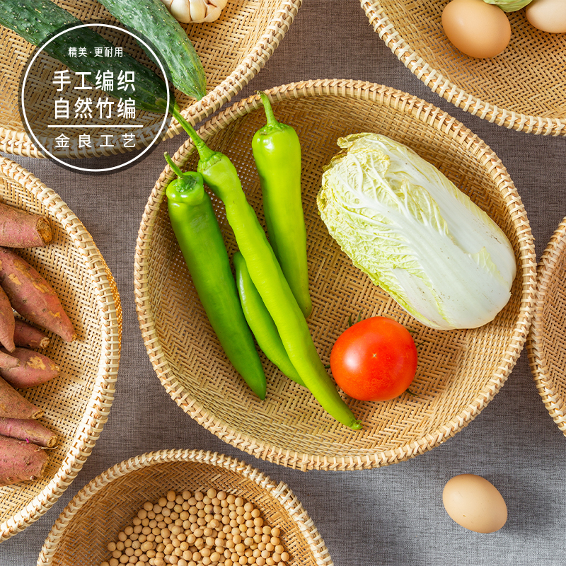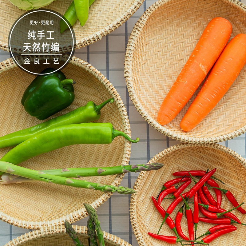 Bamboo woven gold basket boutique bamboo dustpan perforated bamboo basket household fruit basket bamboo woven storage basket bamboo plaque kitchen round bamboo basket